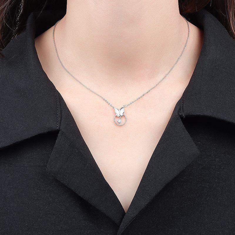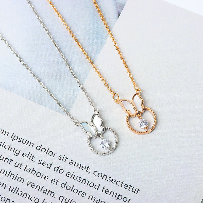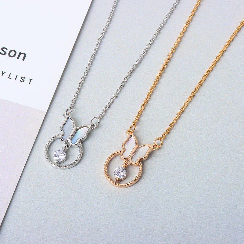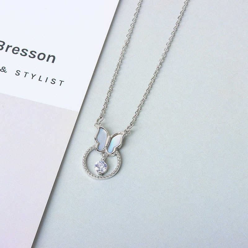 S925 sterling silver necklace mother-of-pearl butterfly pendant clavicle chain