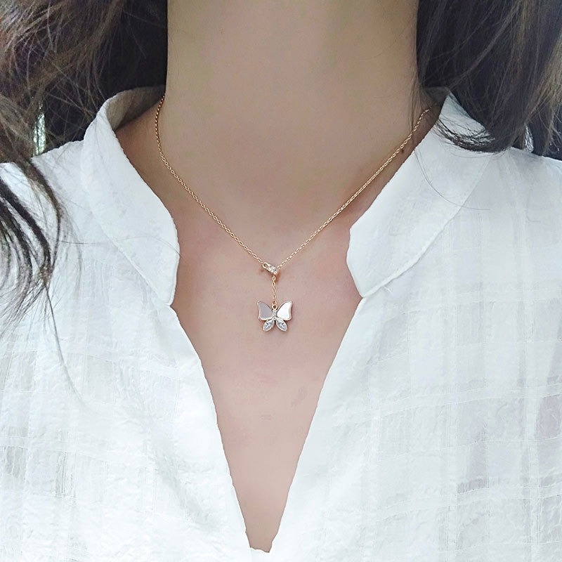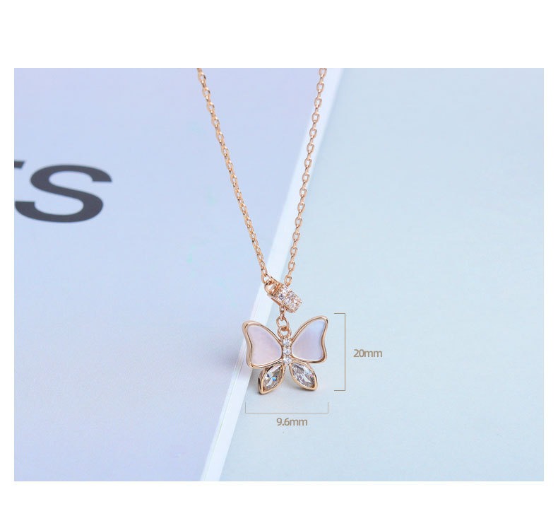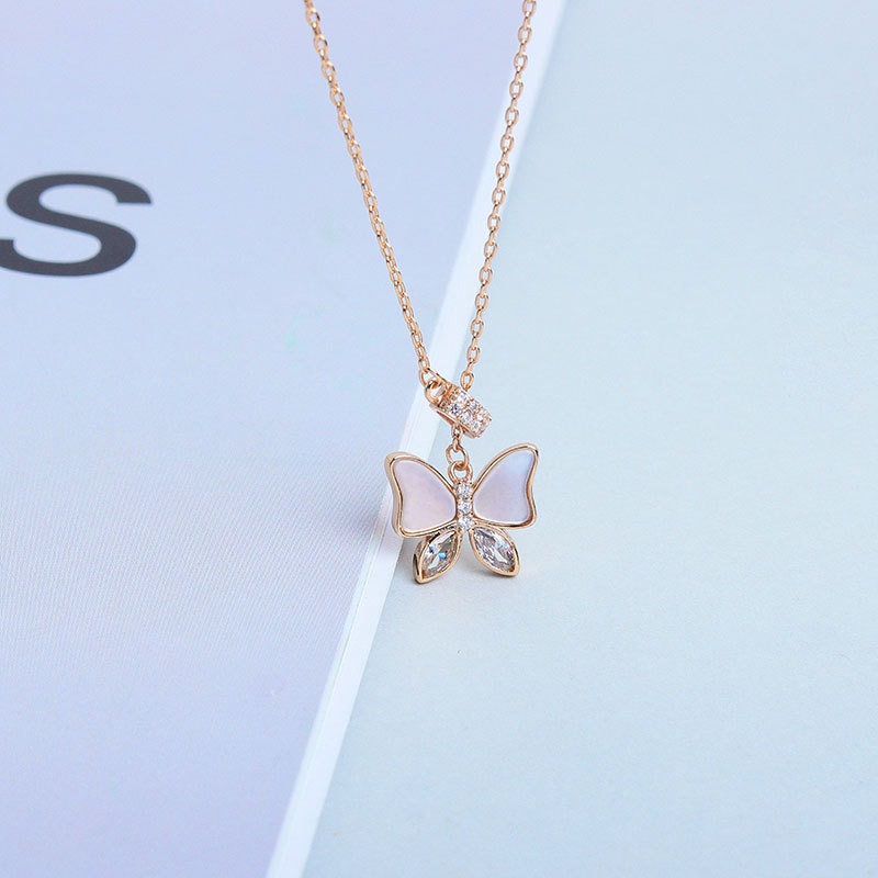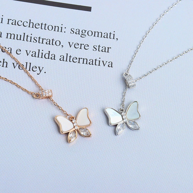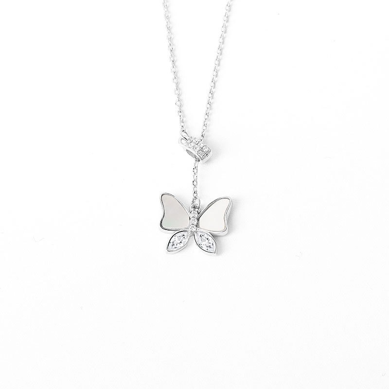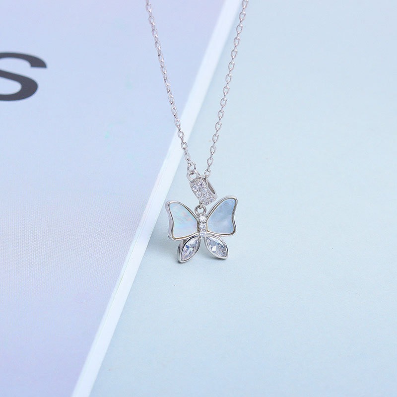 S925 sterling silver necklace mother-of-pearl butterfly pendant clavicle chain