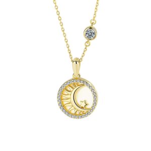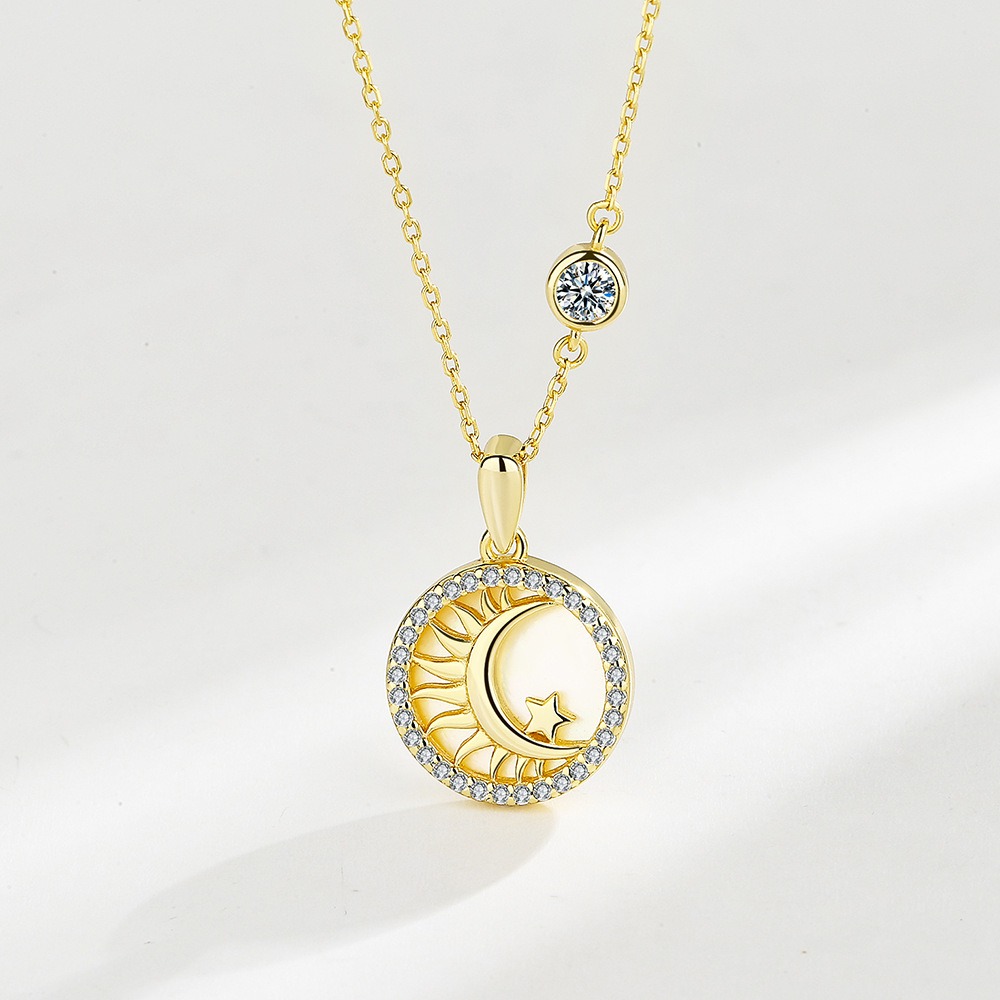 S925 sterling silver necklace mother-of-pearl round star and moon pendant clavicle chain