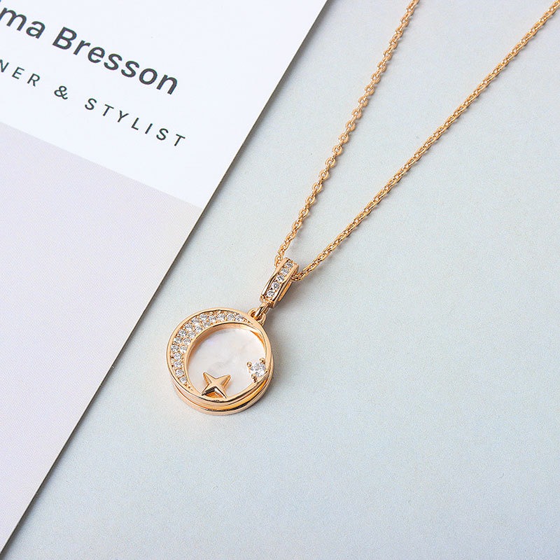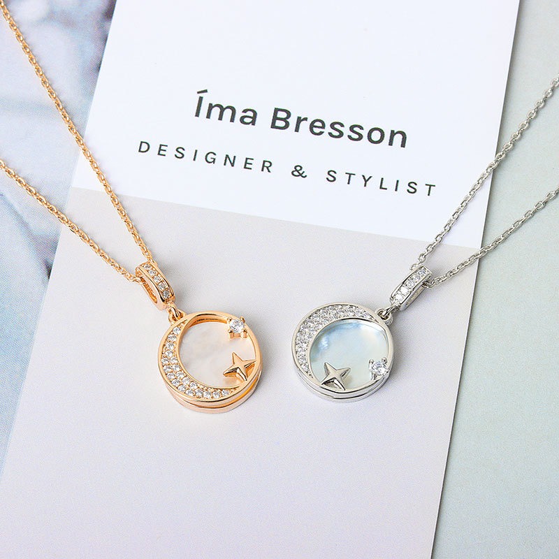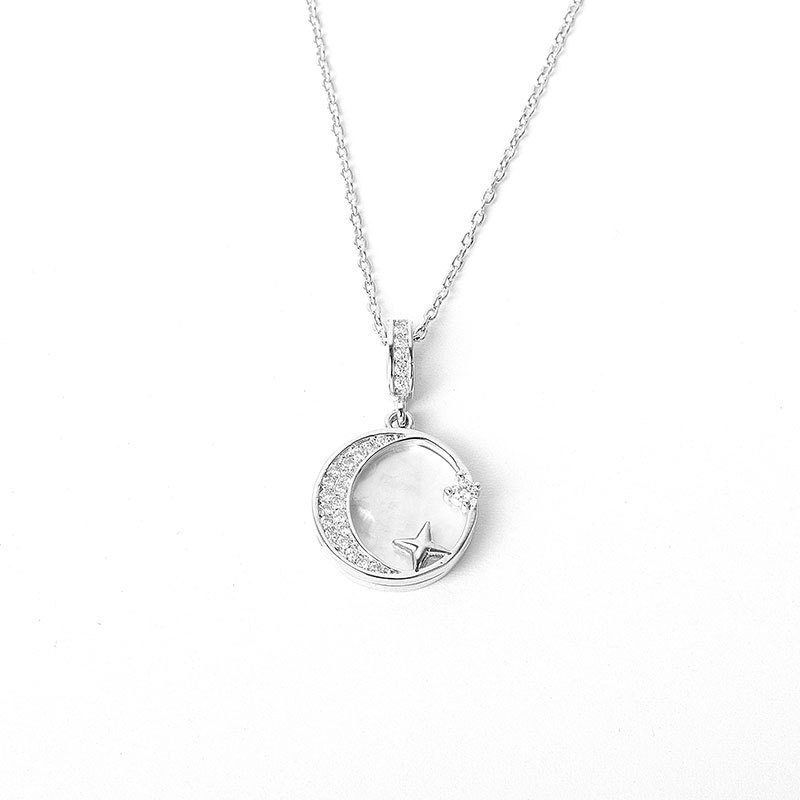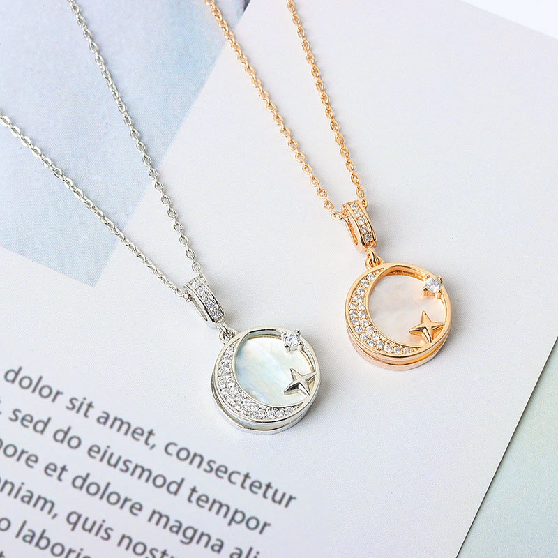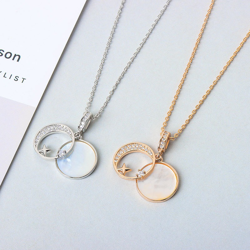 S925 sterling silver necklace mother-of-pearl star moon pendant clavicle chain