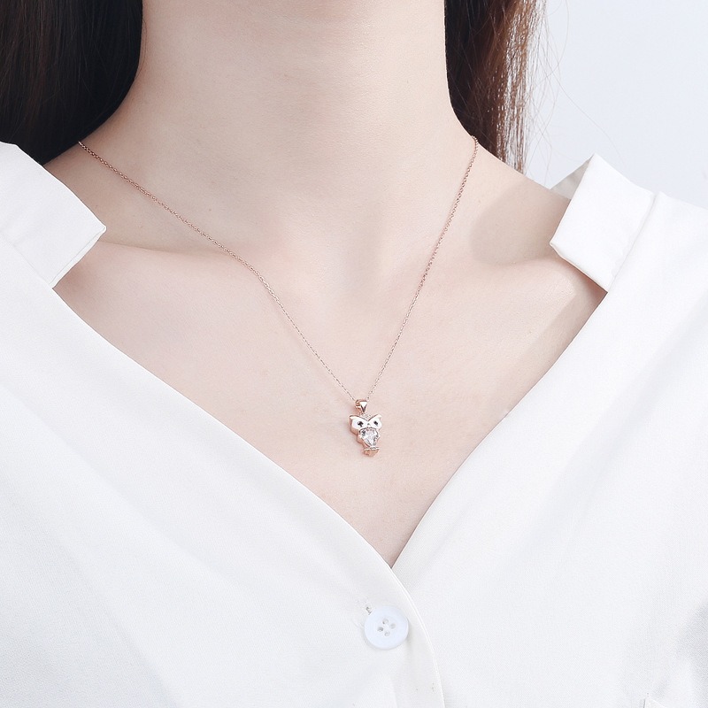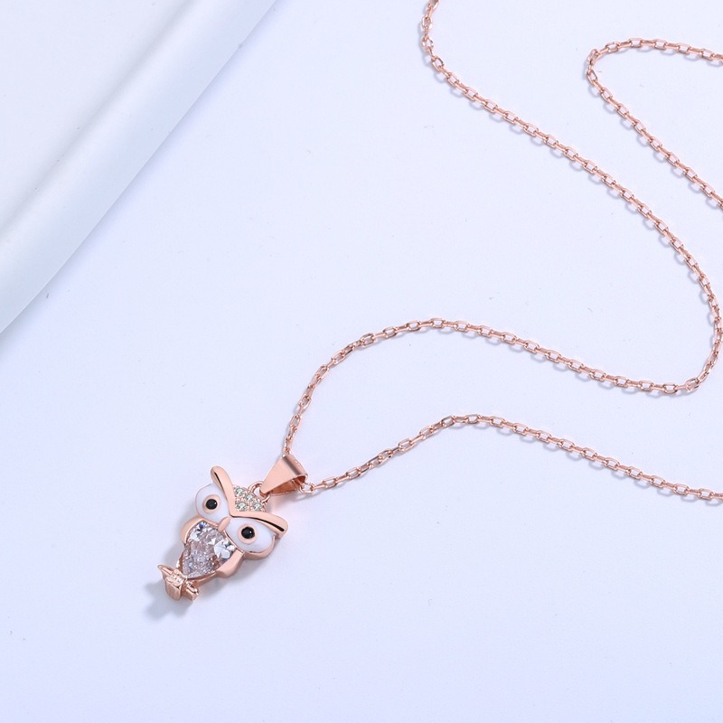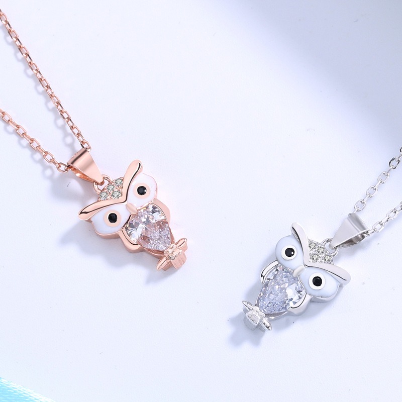 S925 sterling silver necklace owl pendant clavicle chain