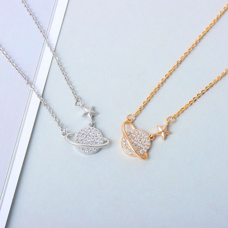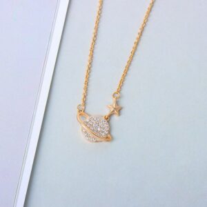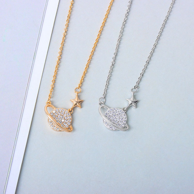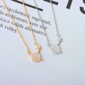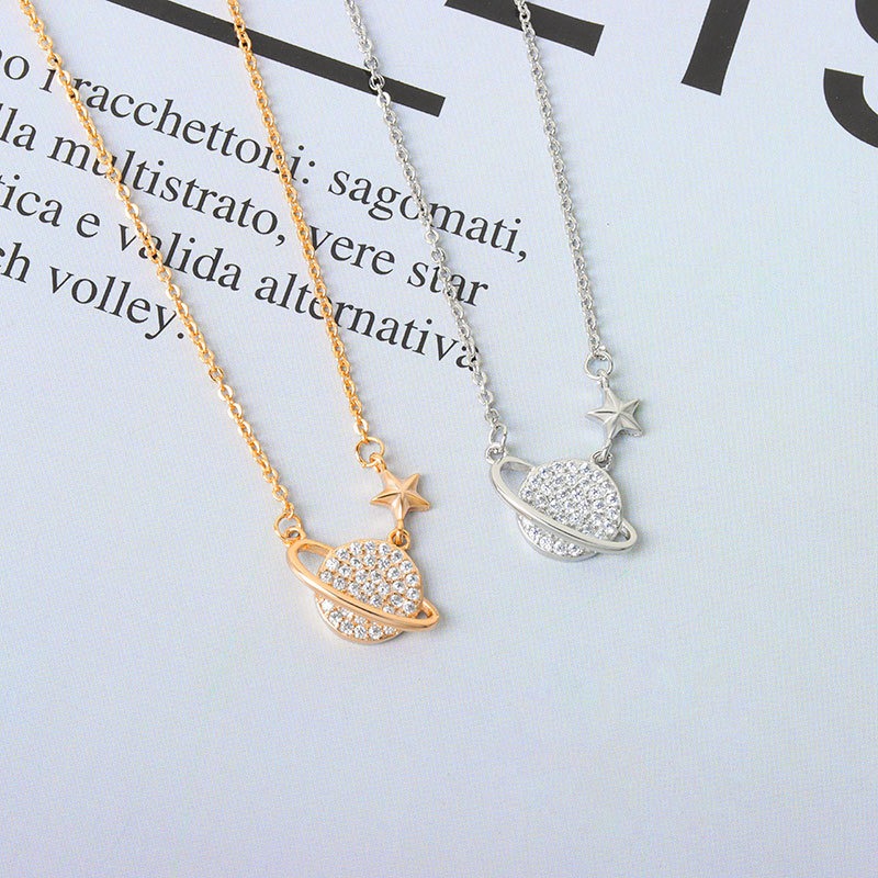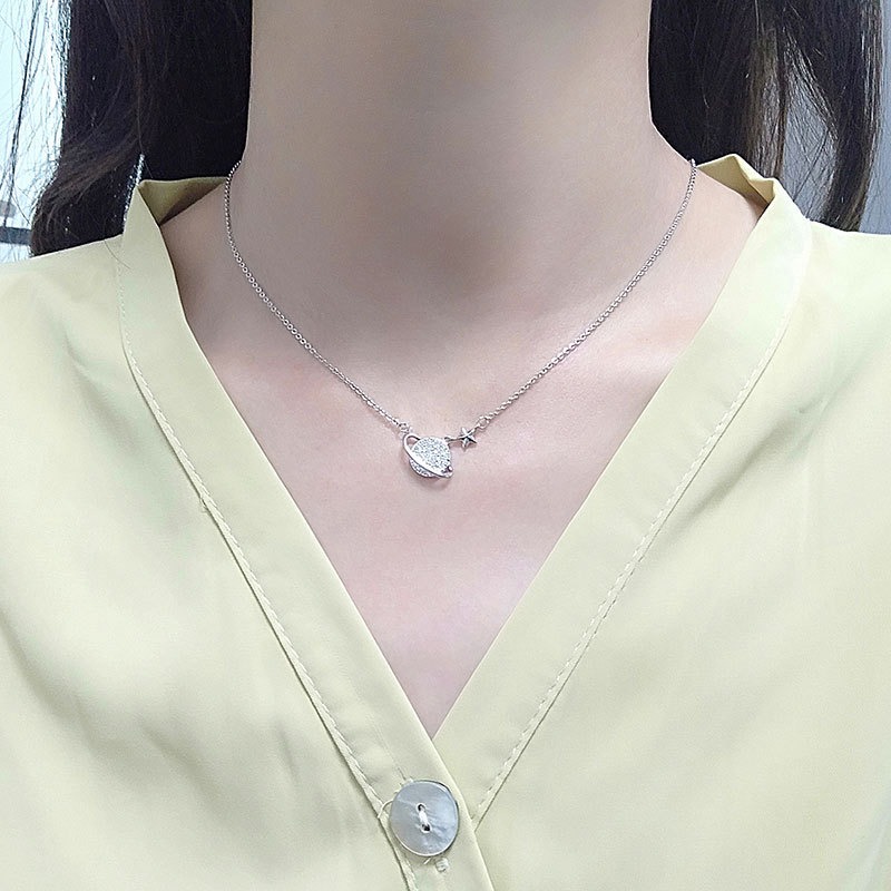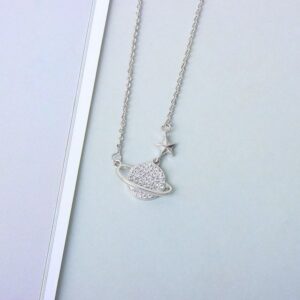 S925 Sterling Silver Necklace Planet Pendant Clavicle Chain