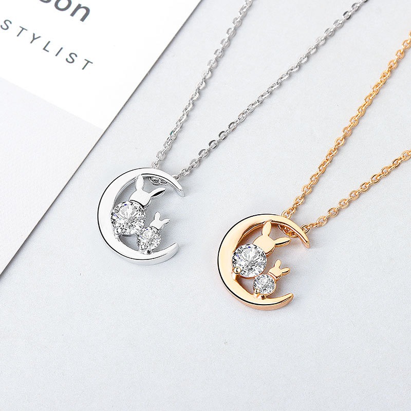 S925 sterling silver necklace rabbit pendant clavicle chain