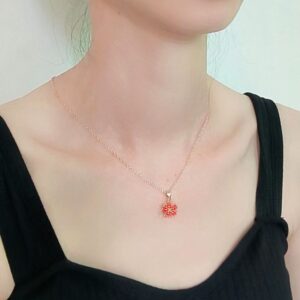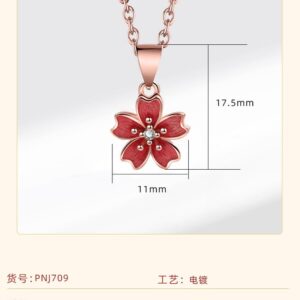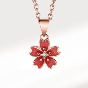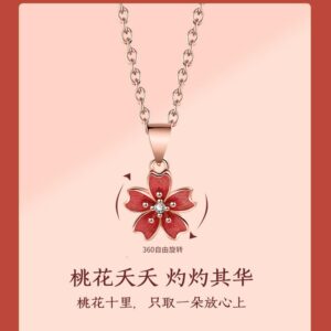 S925 Sterling Silver Necklace Red Sakura Rotatable Pendant Clavicle Chain