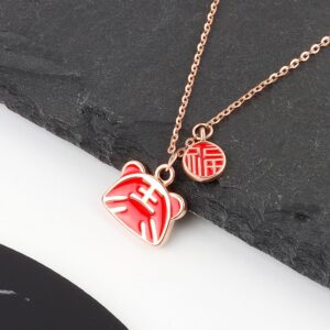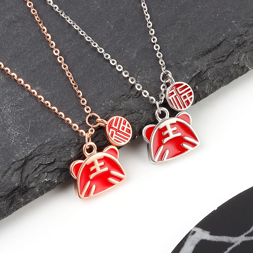 S925 sterling silver necklace red tiger temperature pendant clavicle chain