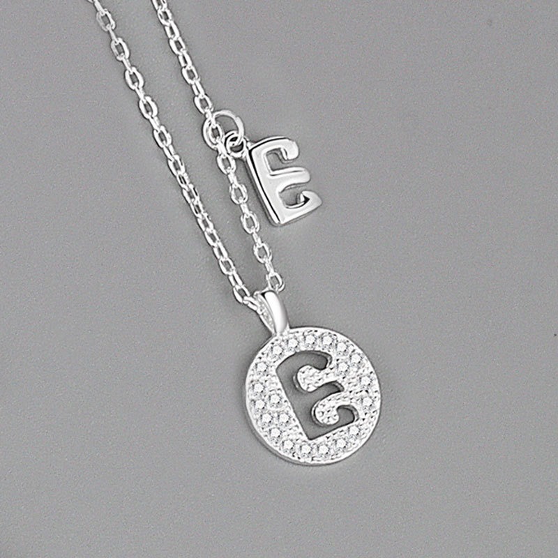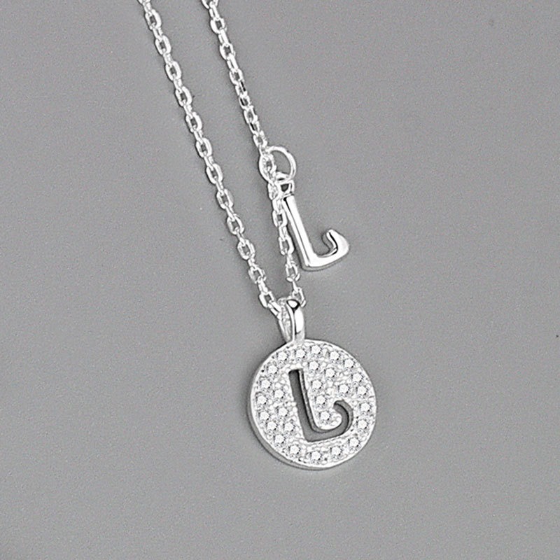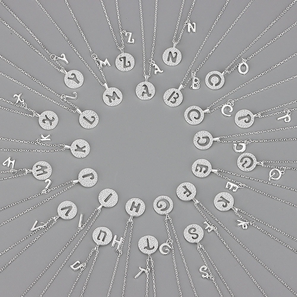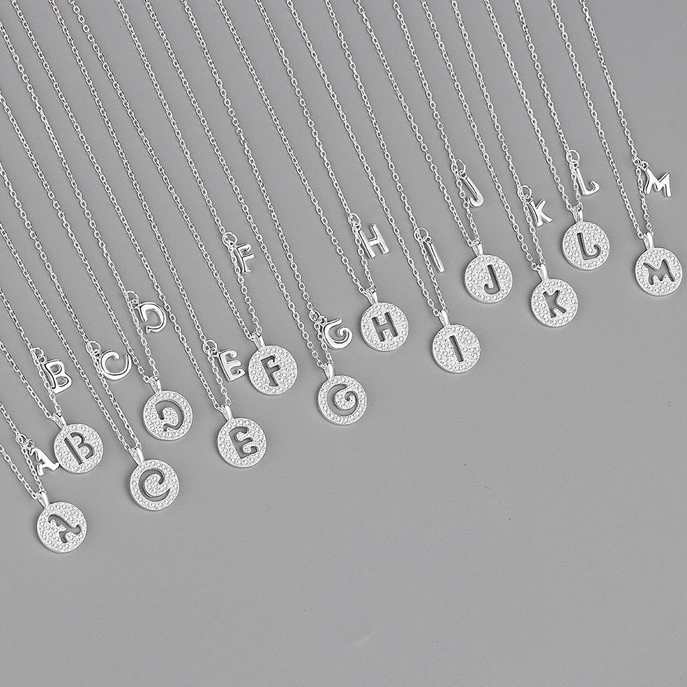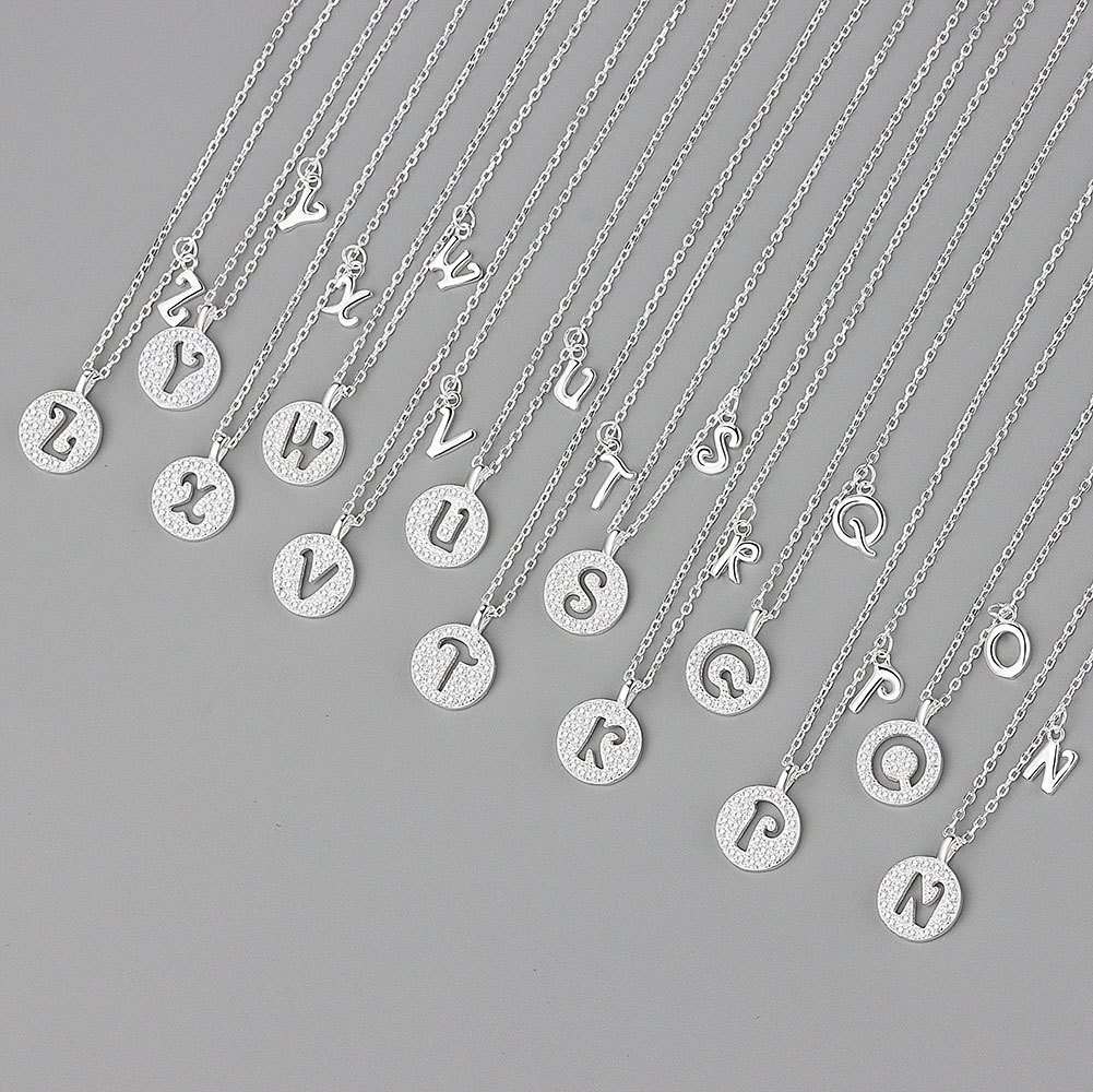 S925 sterling silver necklace round 26 letters English letter pendant clavicle chain
