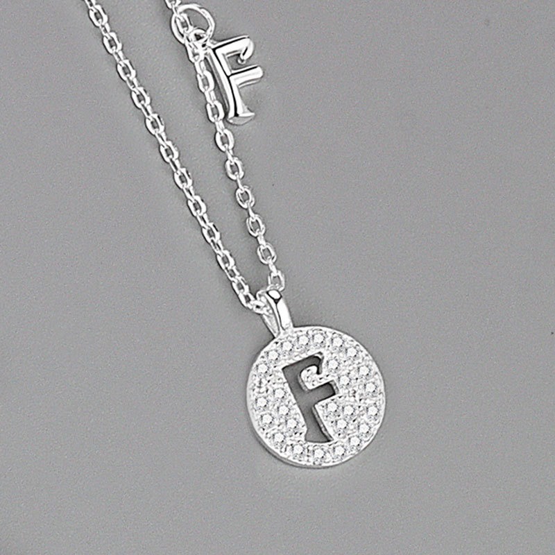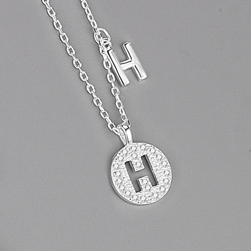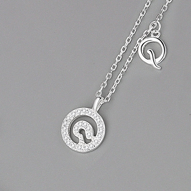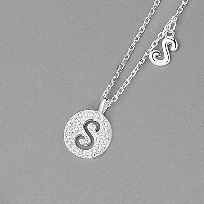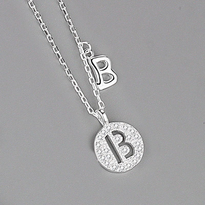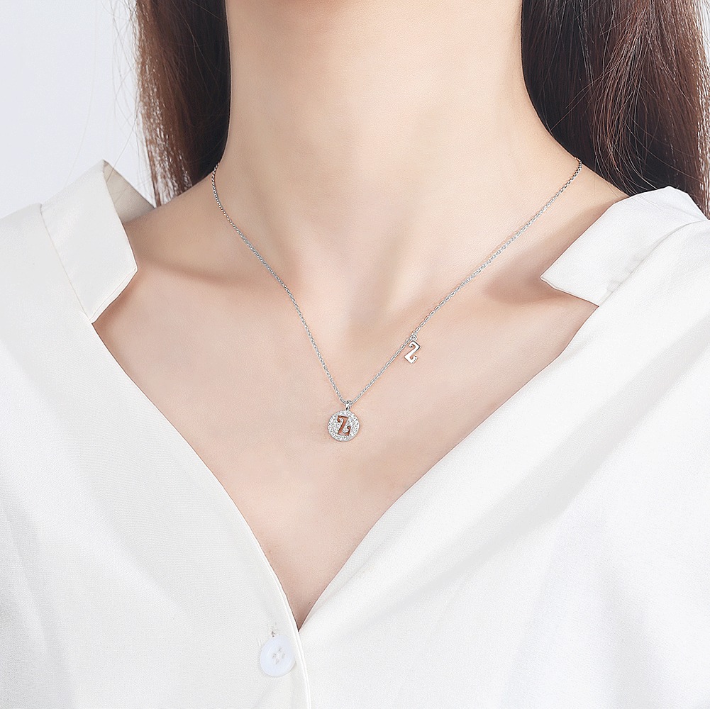 S925 sterling silver necklace round 26 letters English letter pendant clavicle chain