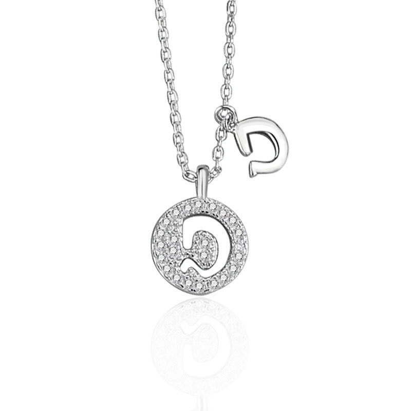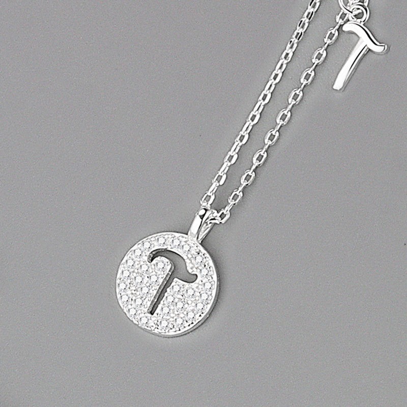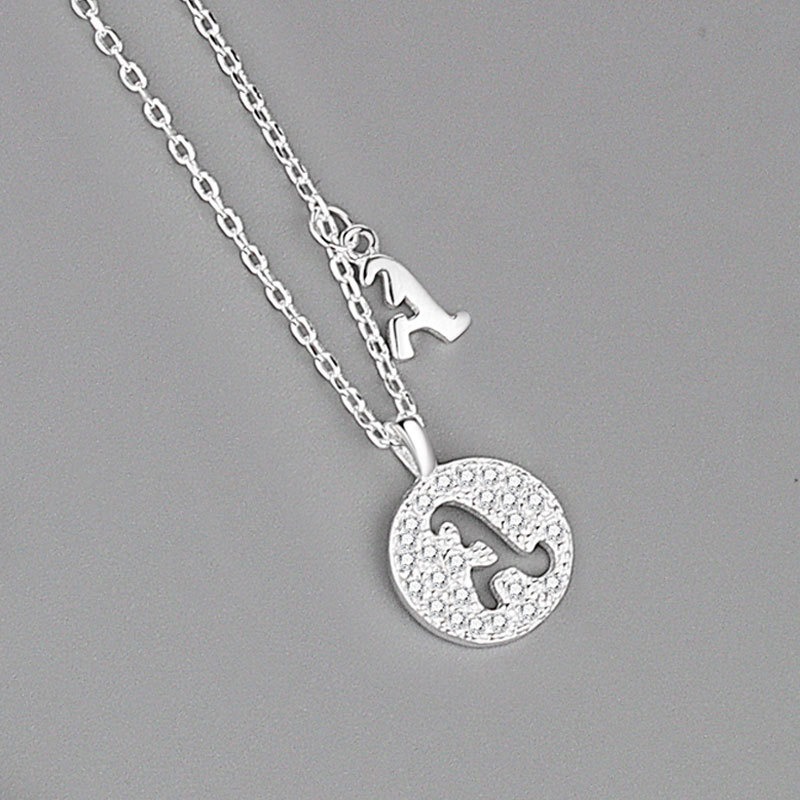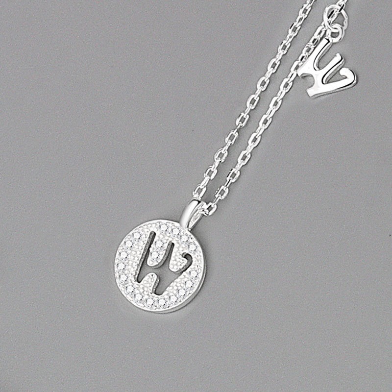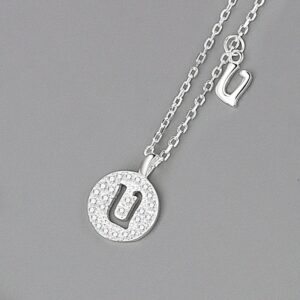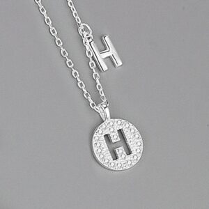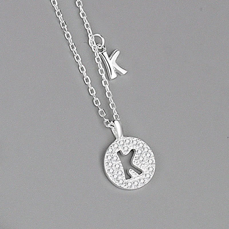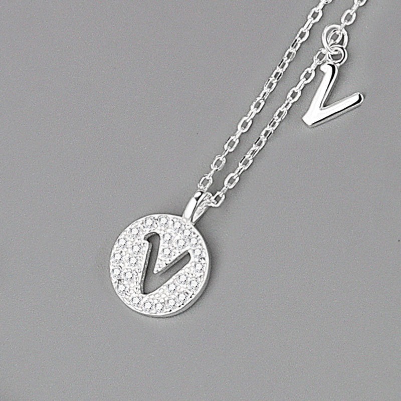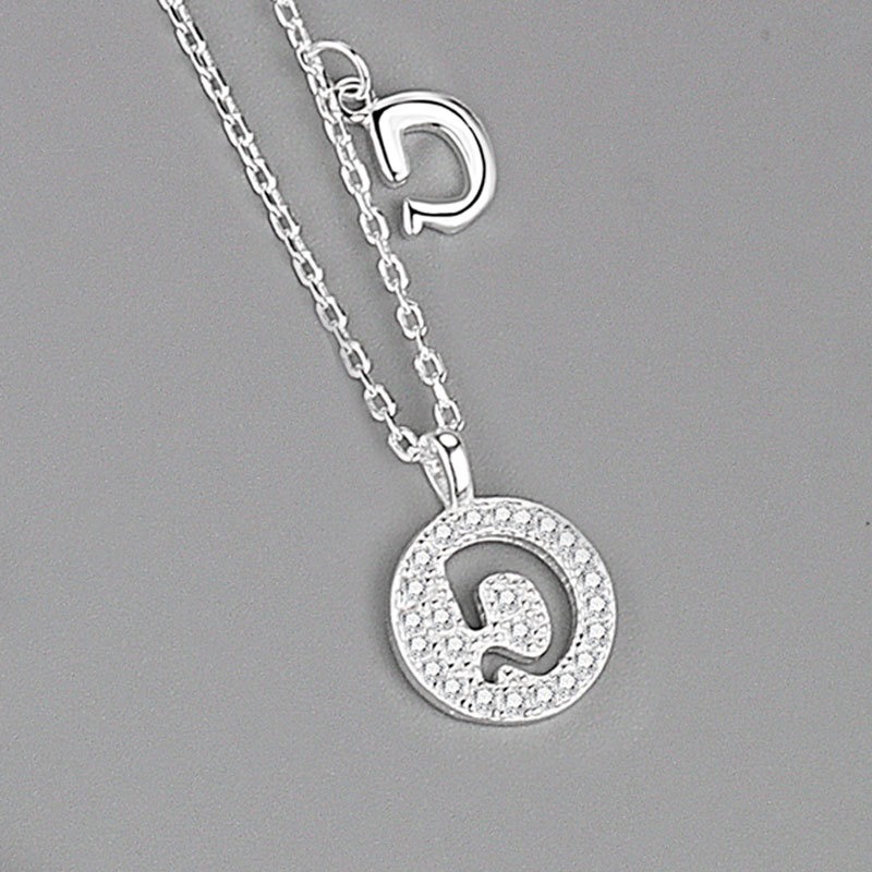 S925 sterling silver necklace round 26 letters English letter pendant clavicle chain