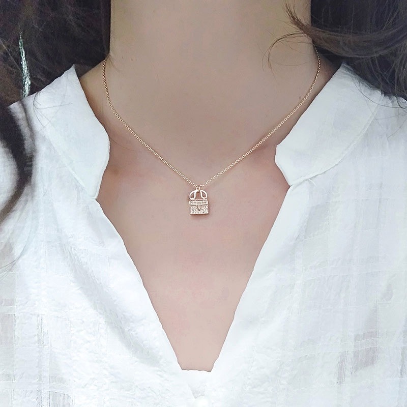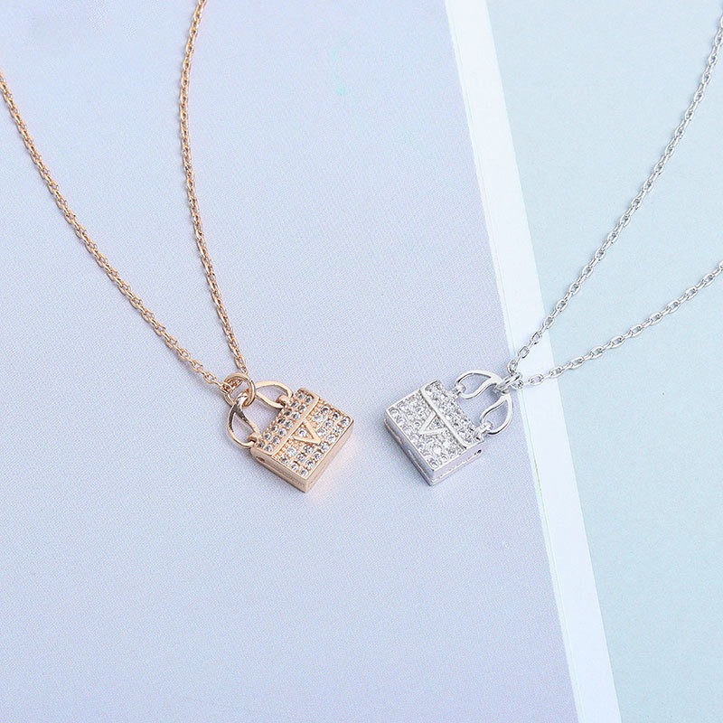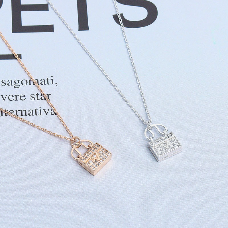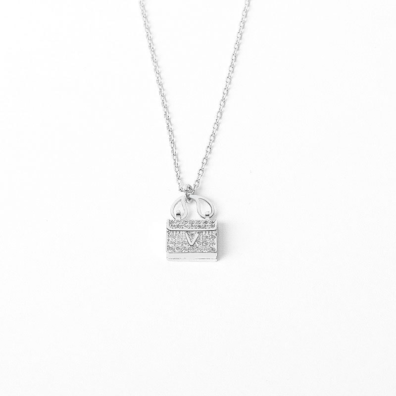 S925 sterling silver necklace shell tote bag pendant clavicle chain