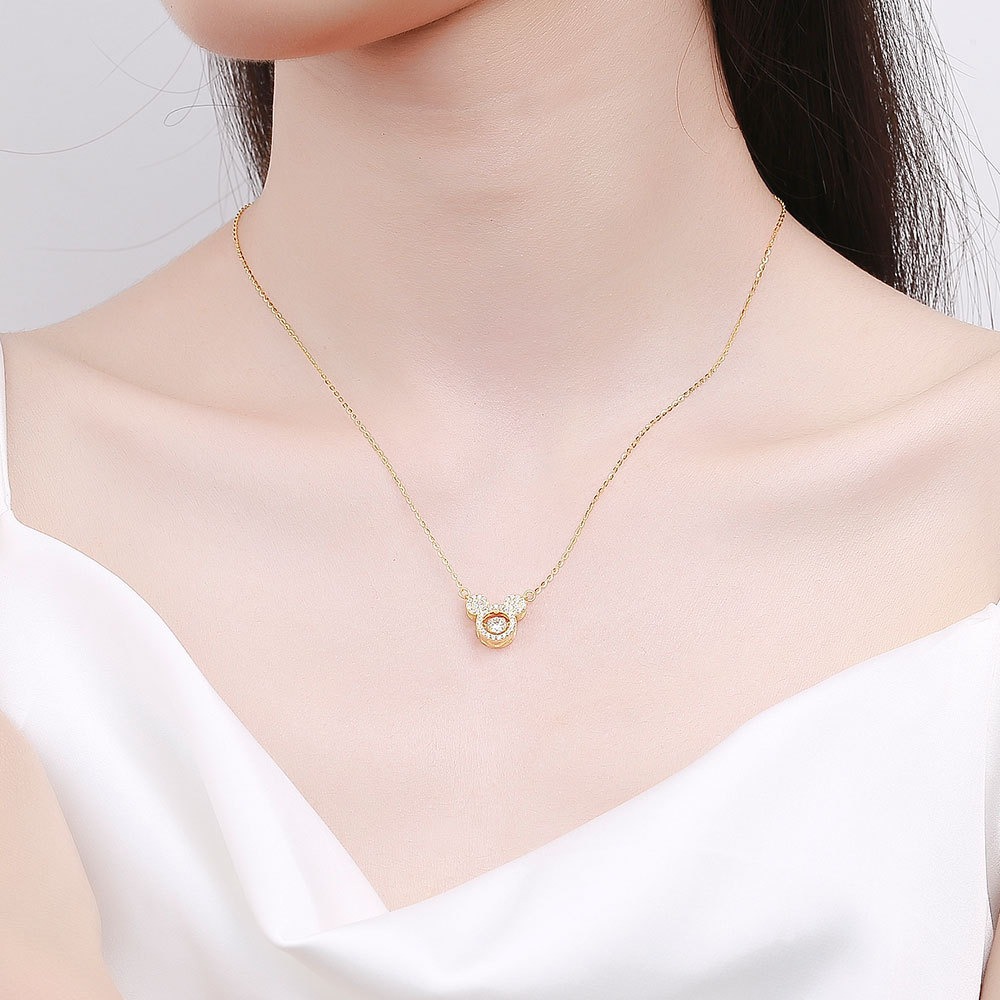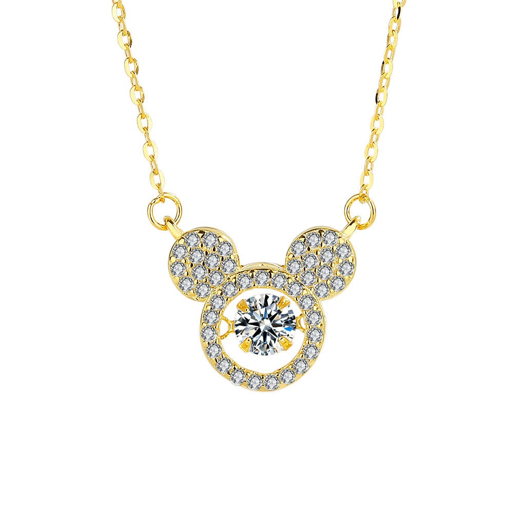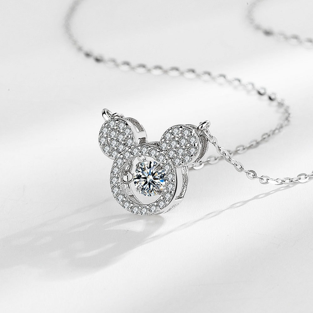 S925 sterling silver necklace silver inlaid with zircon cartoon mouse pendant clavicle chain
