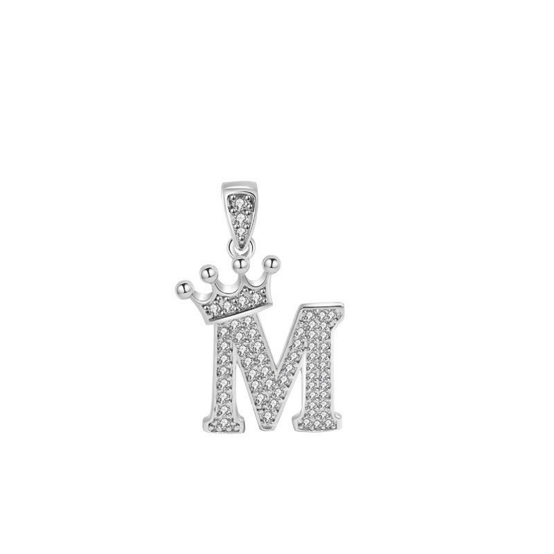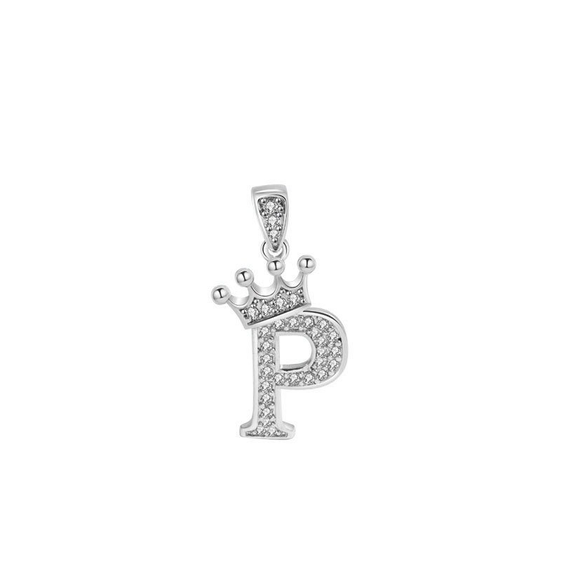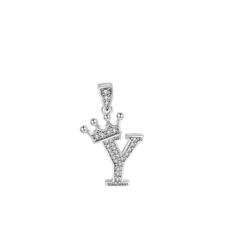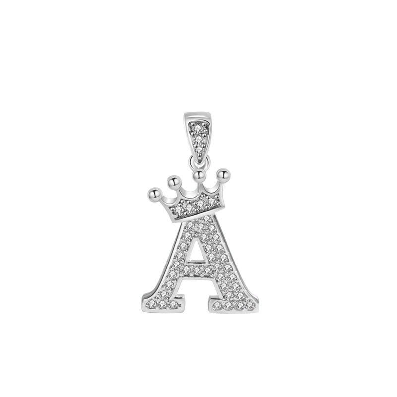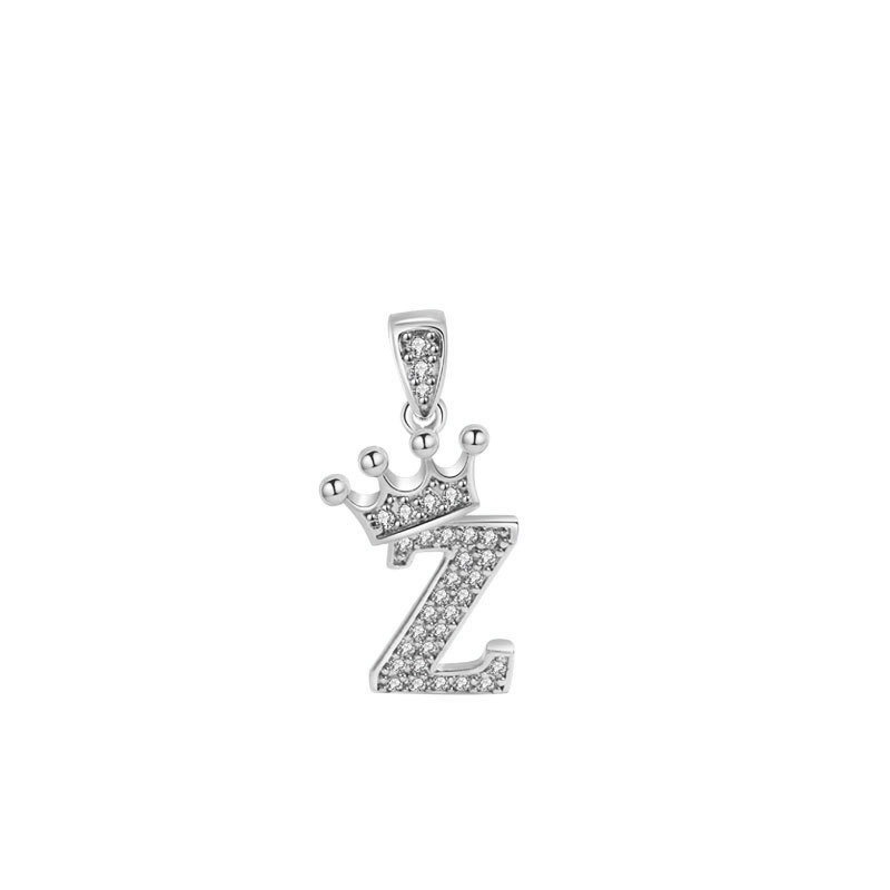 S925 sterling silver necklace silver inlaid with zircon crown 26 letters pendant clavicle chain