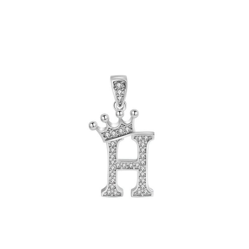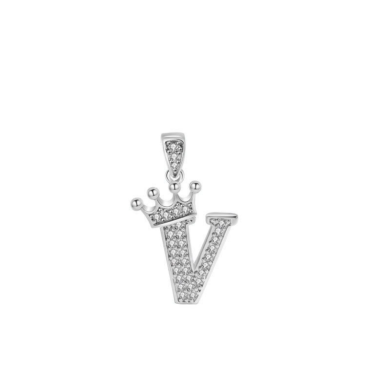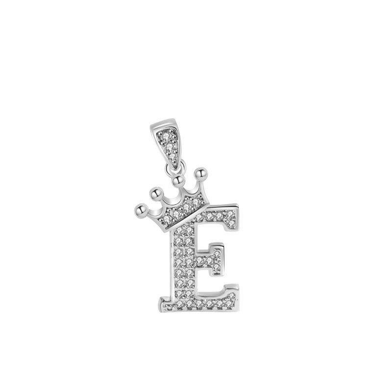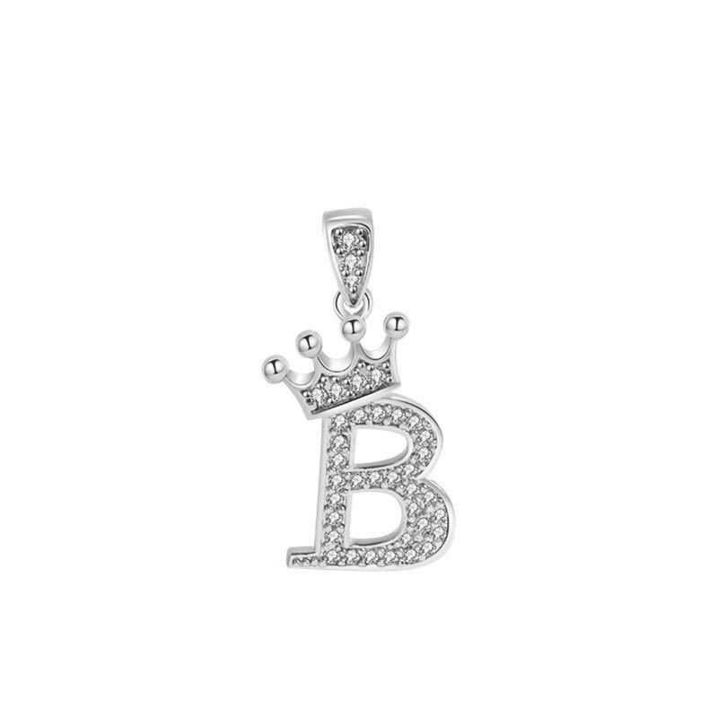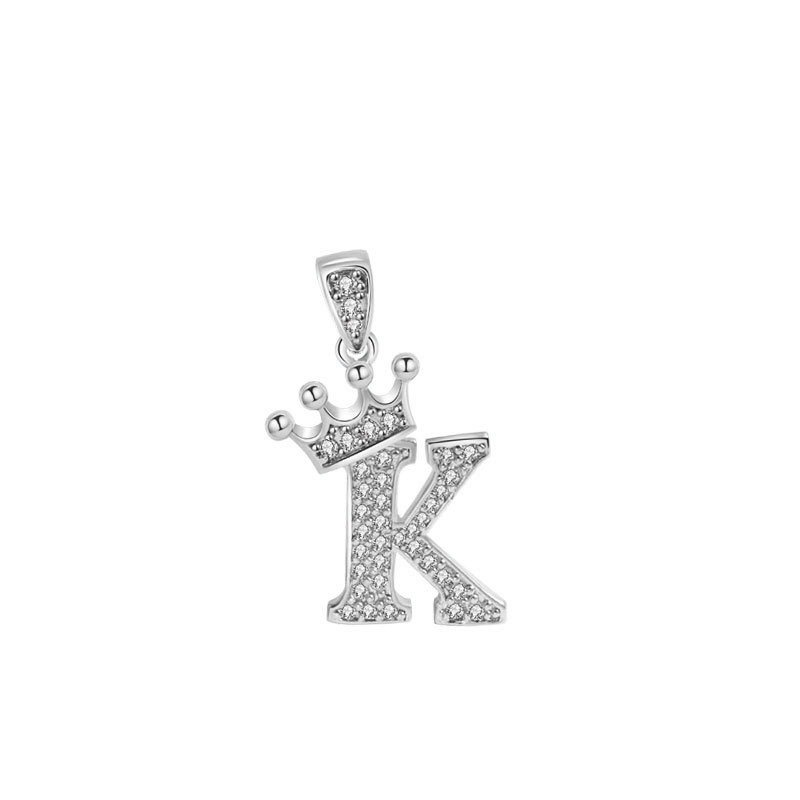S925 sterling silver necklace silver inlaid with zircon crown 26 letters pendant clavicle chain