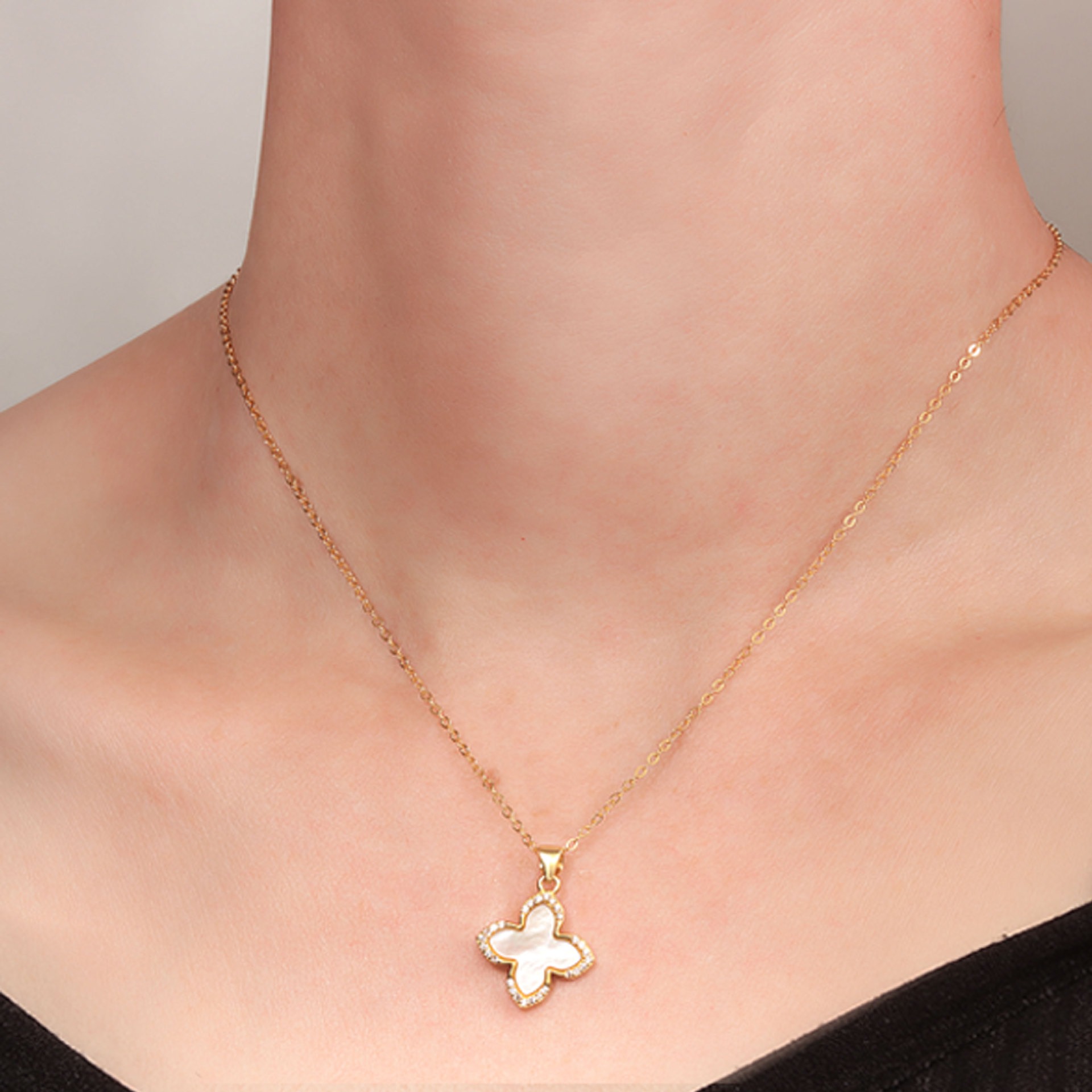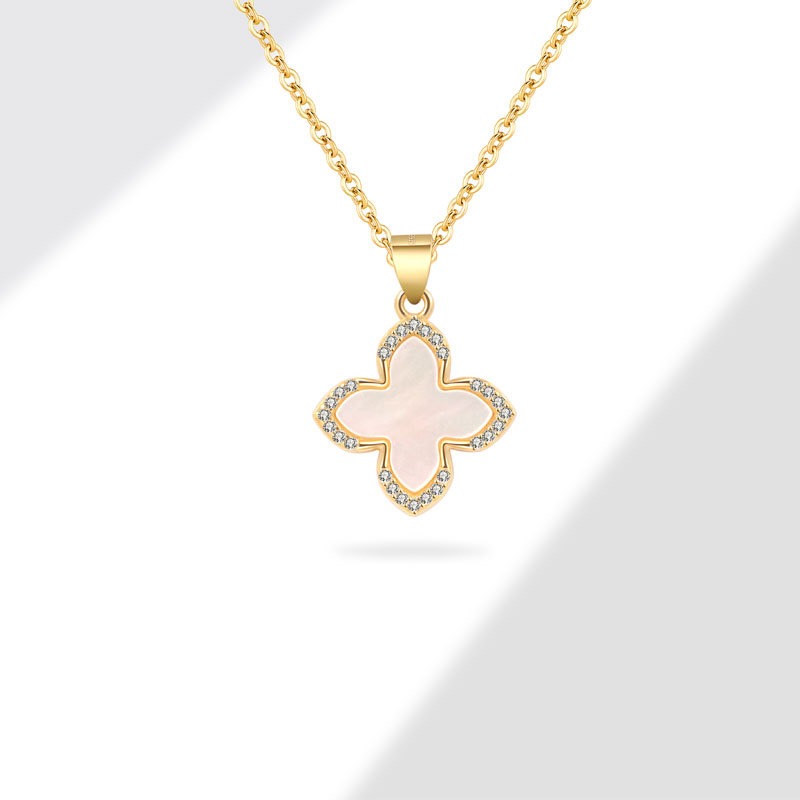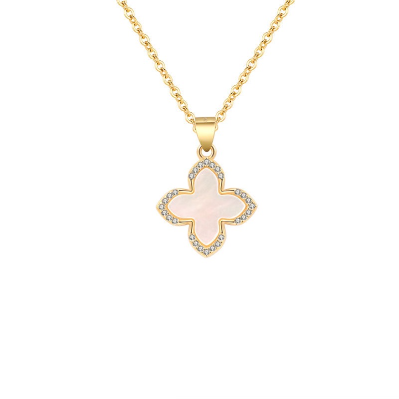 S925 sterling silver necklace silver inlaid with zircon white freight, clover pendant, clavicle chain