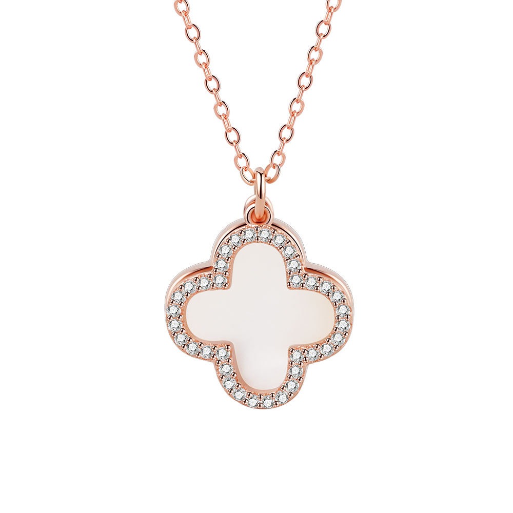 S925 sterling silver necklace silver inlaid zircon clover fritillary pendant clavicle chain