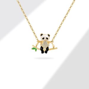 S925 sterling silver necklace silver inlaid zircon panda pendant clavicle chain