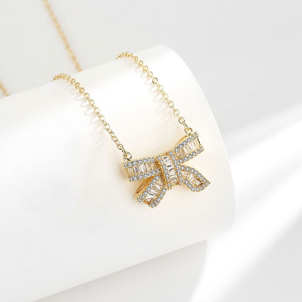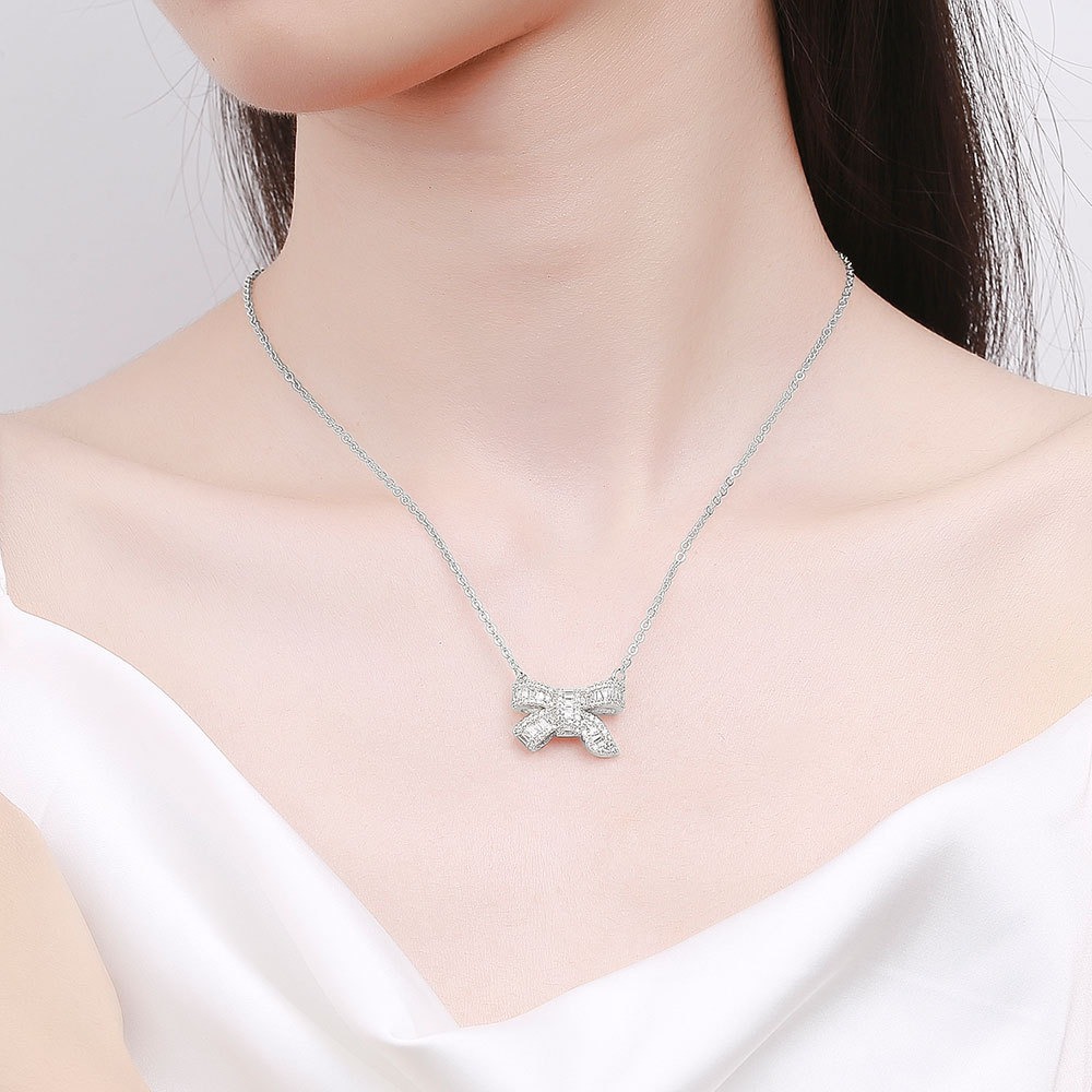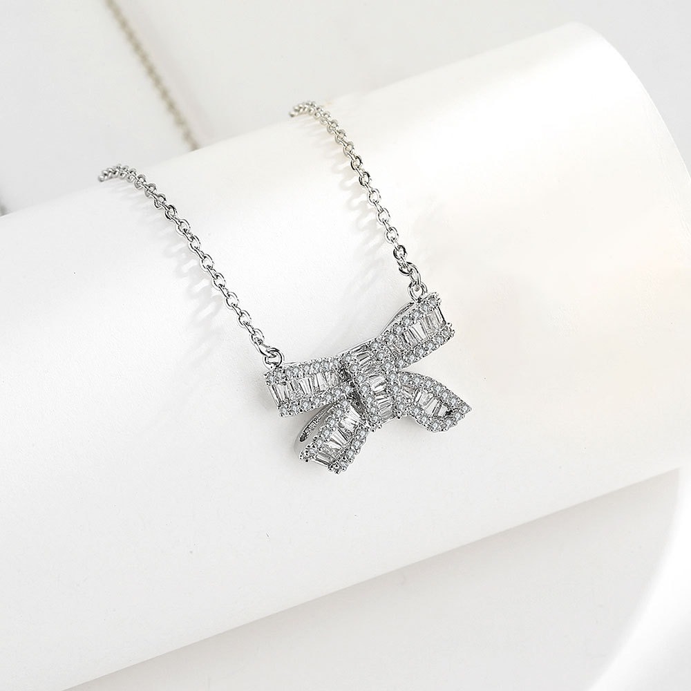 S925 sterling silver necklace silver inlaid zirconia bow pendant clavicle chain