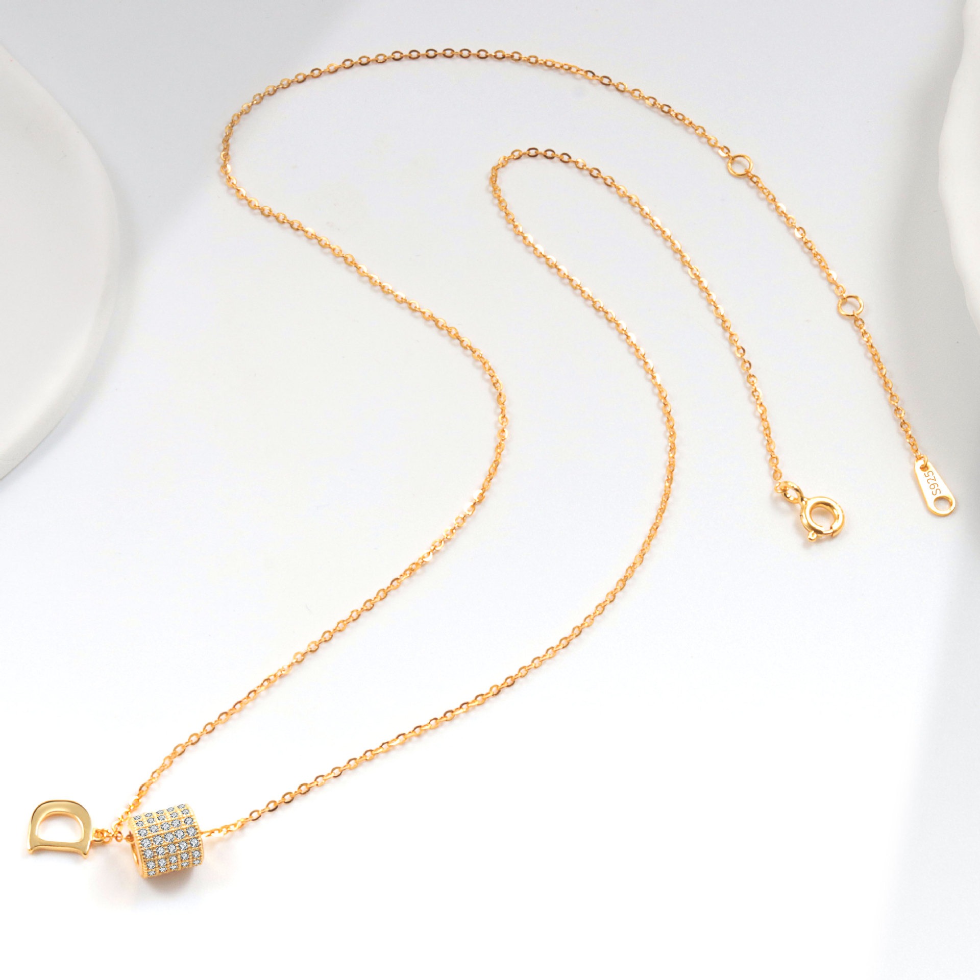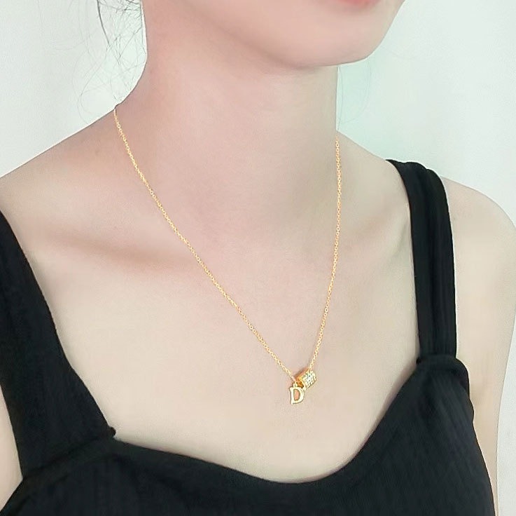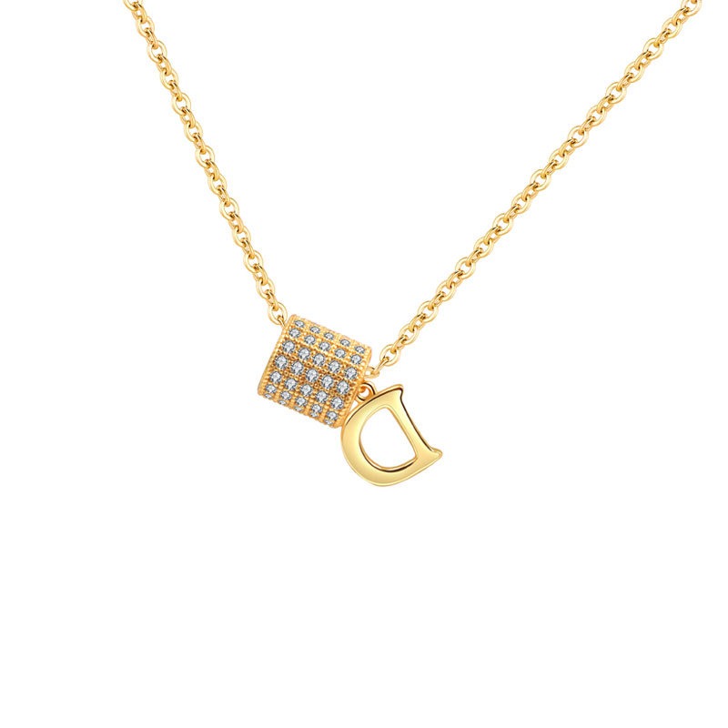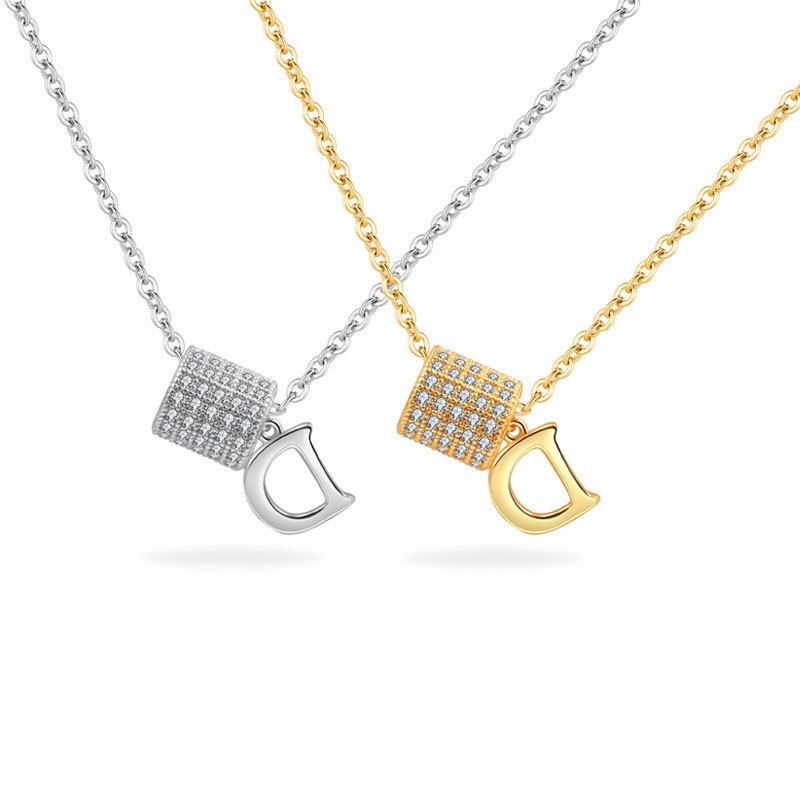 S925 sterling silver necklace silver set with zircon D letter pendant clavicle chain