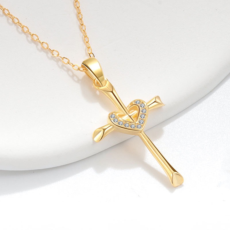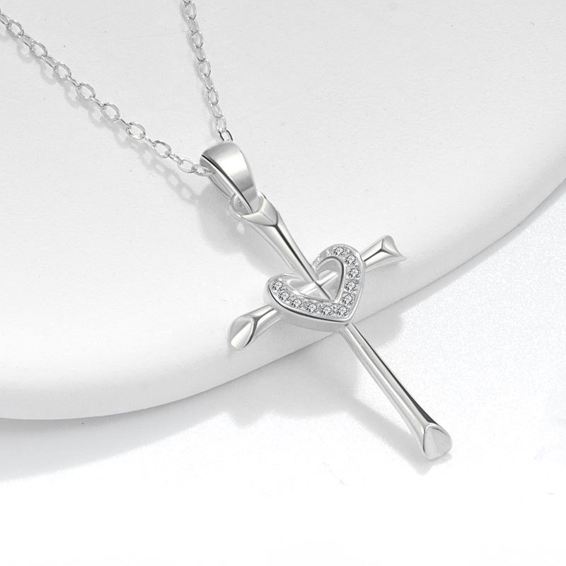S925 sterling silver necklace silver set zircon cross heart pull-out pendant clavicle chain