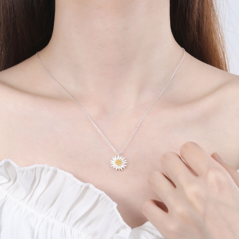 S925 sterling silver necklace small daisy pendant clavicle chain