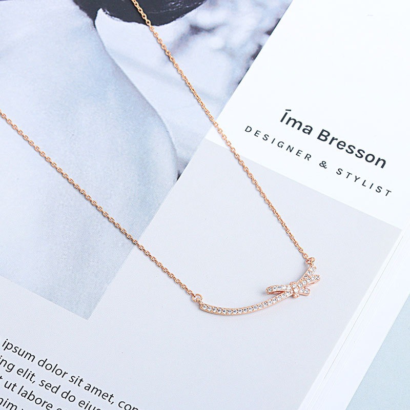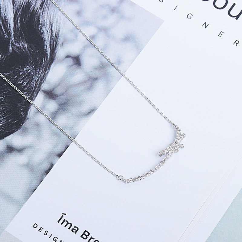 S925 sterling silver necklace smile bow pendant clavicle chain