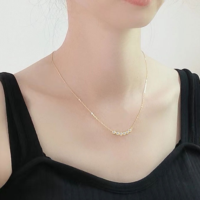 S925 Silver Jewelry Set of Three Zircon Stud Earrings European and American Row Diamond Dial Ring Sterling Silver Mock Diamond Necklace