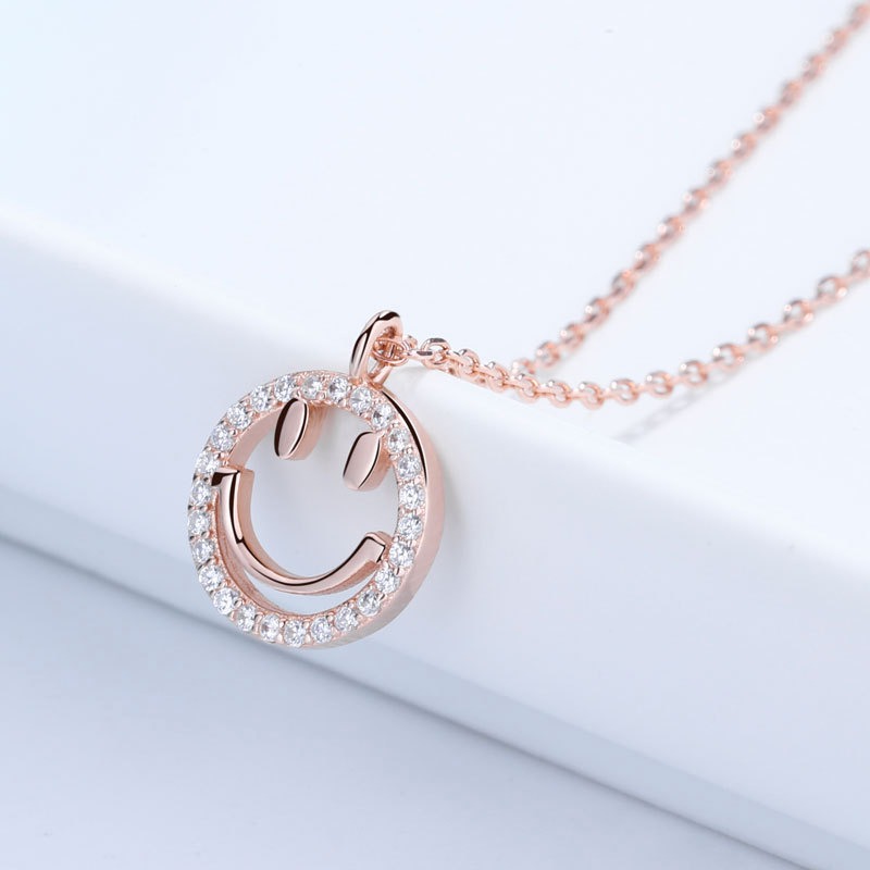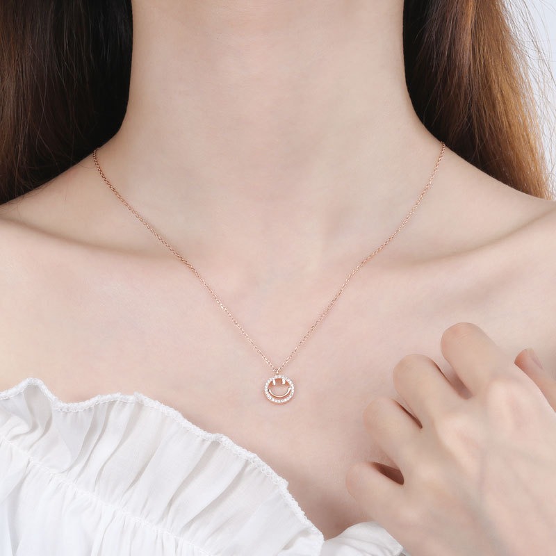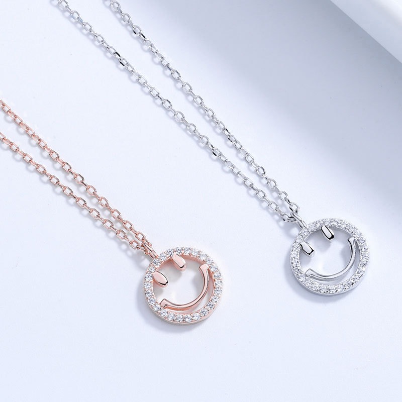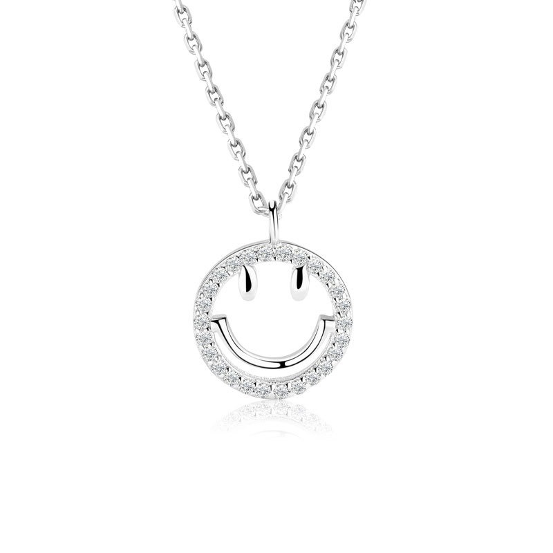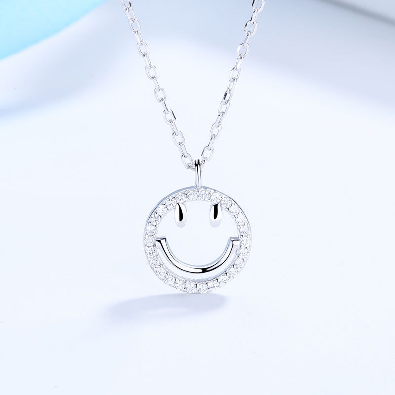 S925 sterling silver necklace smiley face pendant clavicle chain
