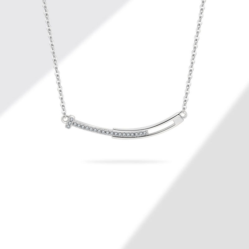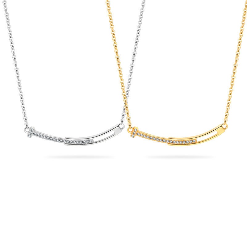 S925 sterling silver necklace smiley face pendant clavicle chain