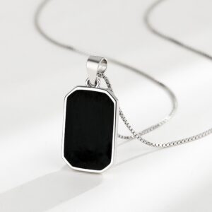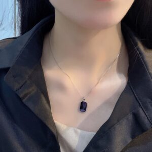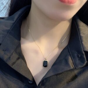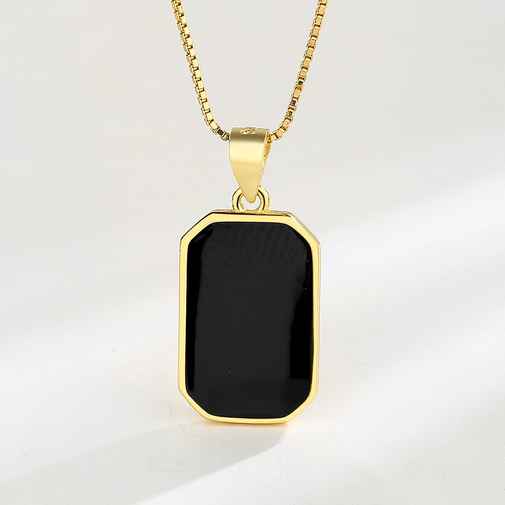 S925 sterling silver necklace square pendant clavicle chain