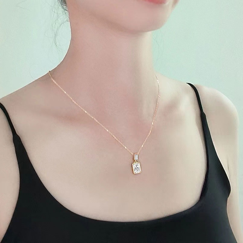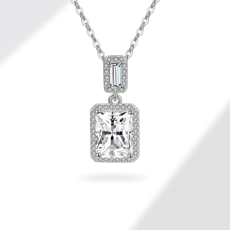 S925 sterling silver necklace square perfume bottle pendant clavicle chain