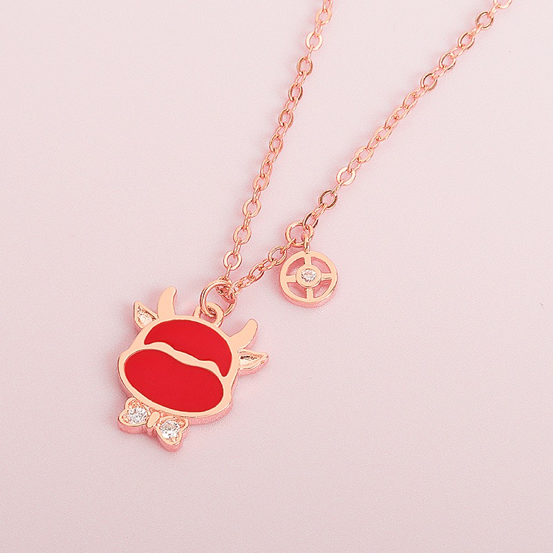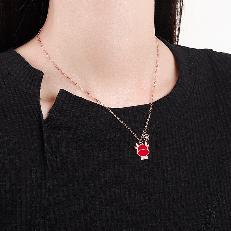 S925 sterling silver necklace temperature change red bull head pendant clavicle chain