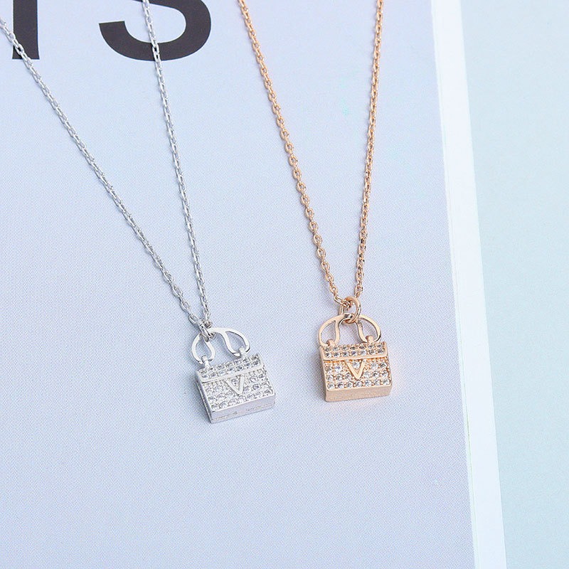 S925 sterling silver necklace tote bag pendant clavicle chain