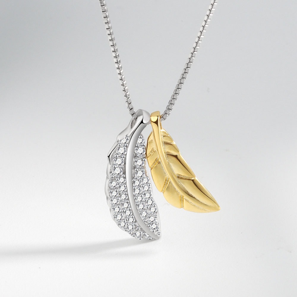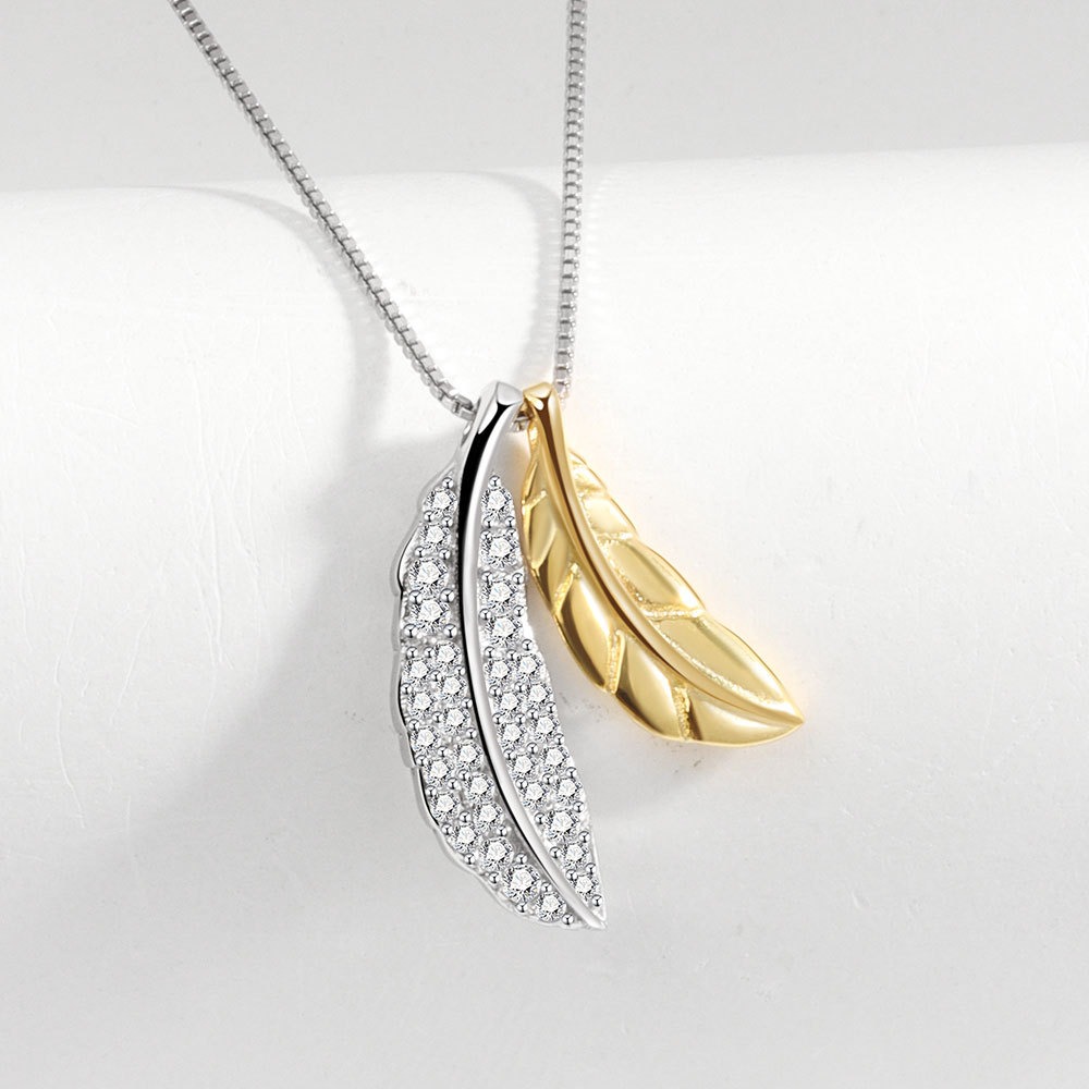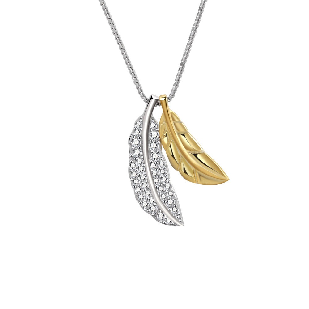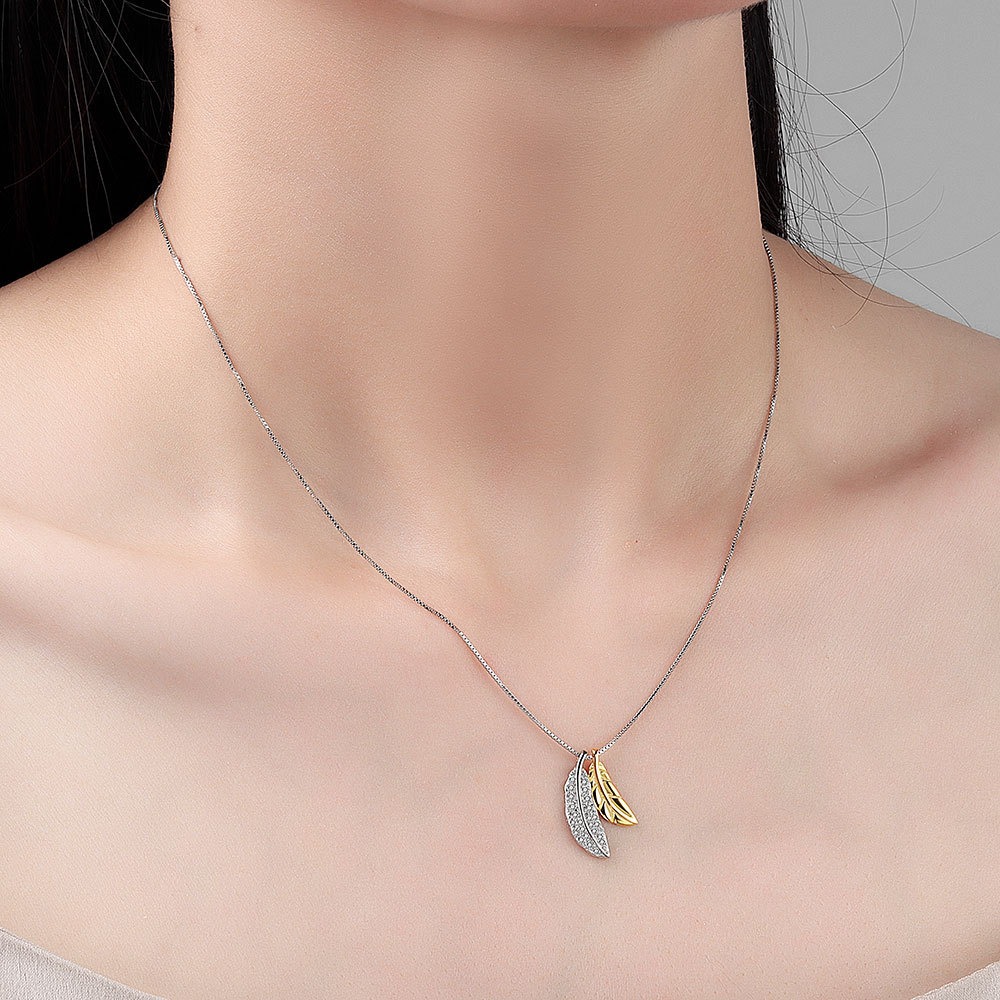 S925 sterling silver necklace two-tone feather pendant clavicle chain