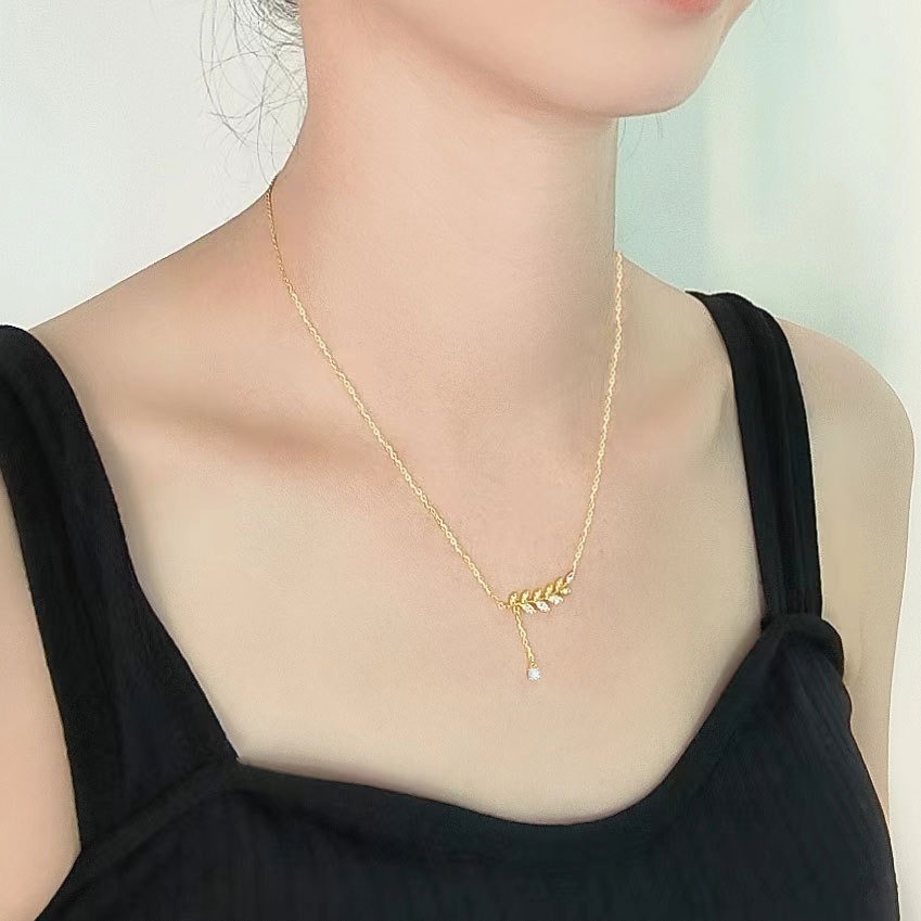 S925 sterling silver necklace wheat ear pendant clavicle chain