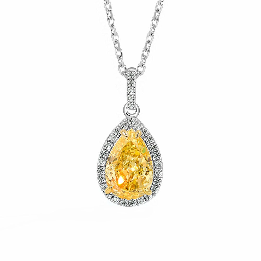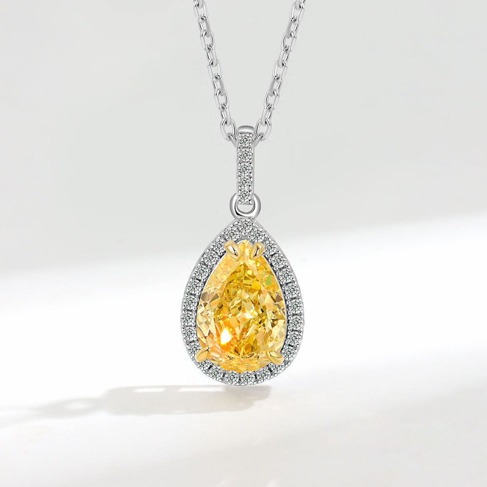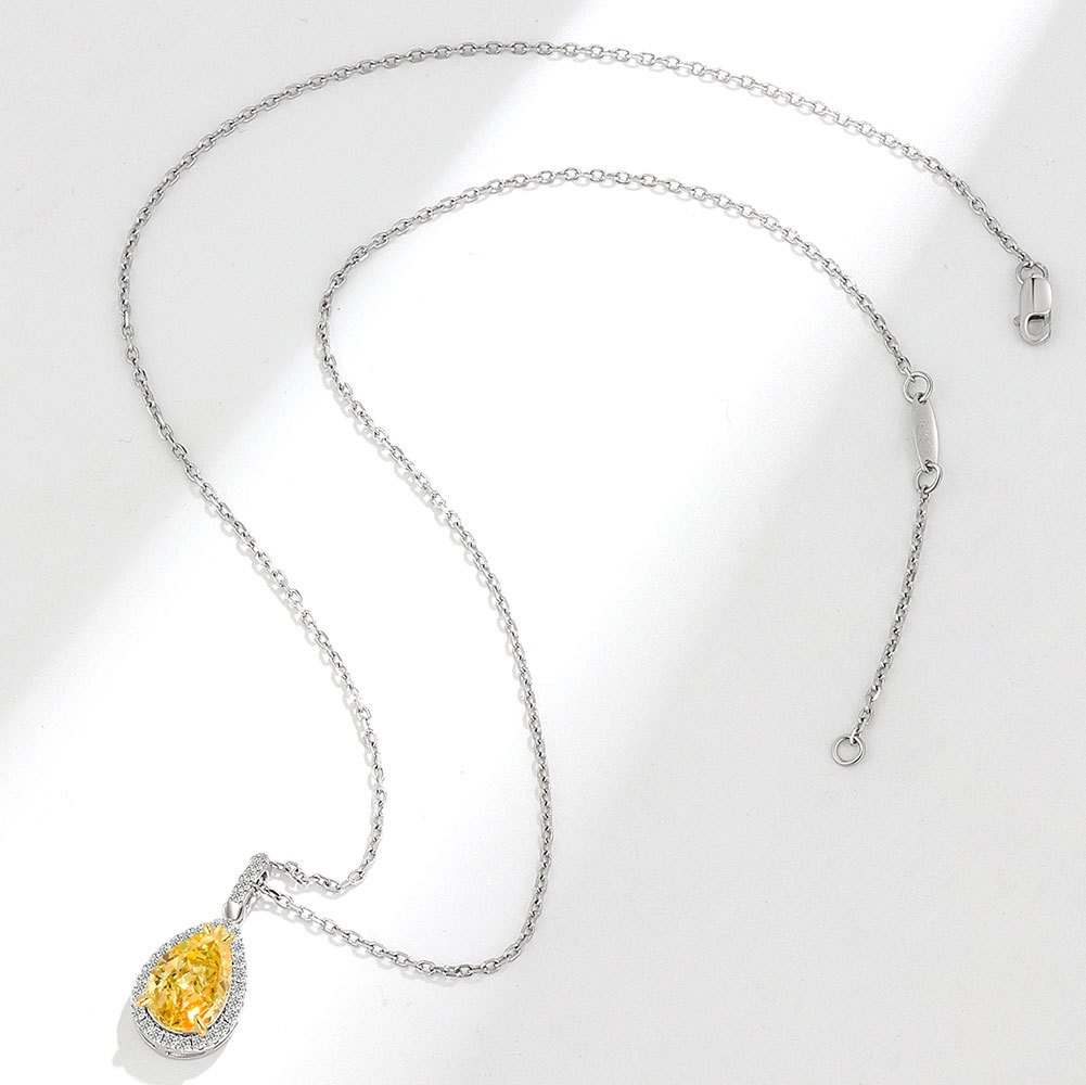 S925 sterling silver necklace yellow drop pendant clavicle chain