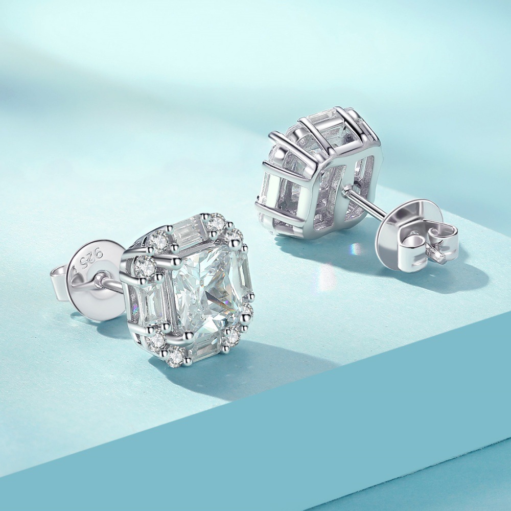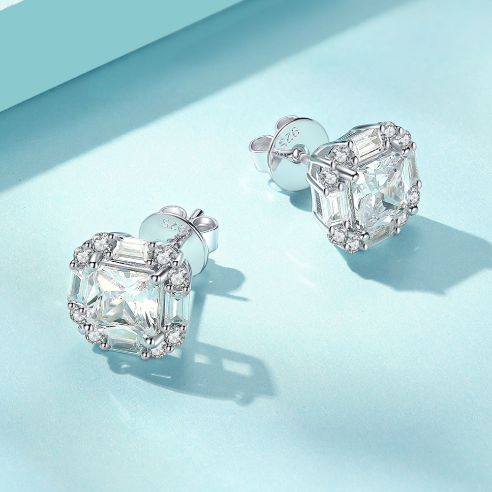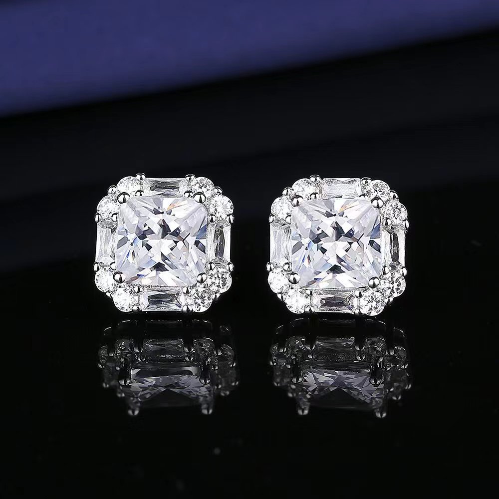 S925 sterling silver new T square back shaped earrings inlaid with zircon trend niche women’s earrings European and American fashion earrings women
