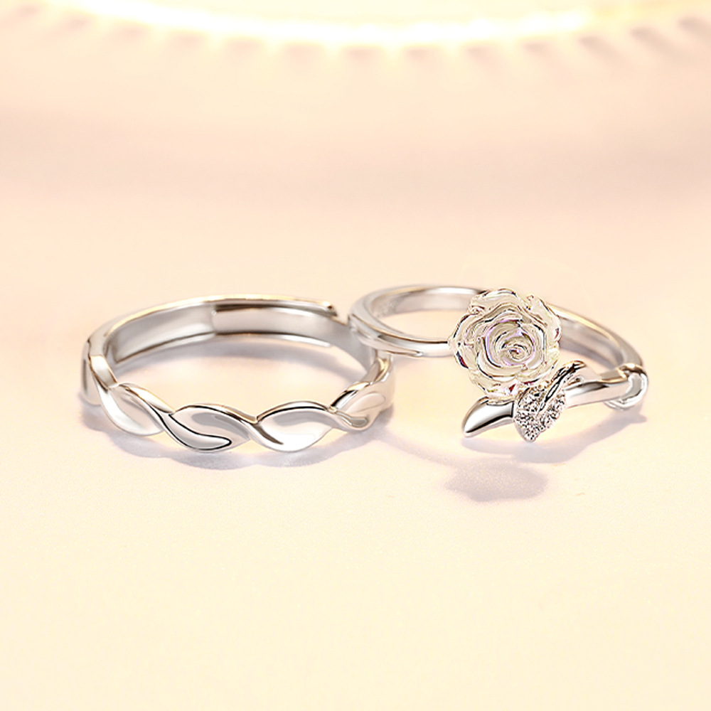 S925 sterling silver open camellia couple ring flower couple ring