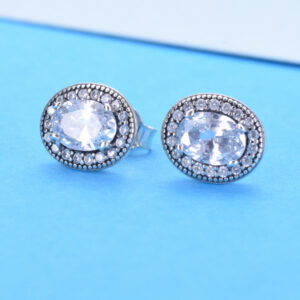 S925 sterling silver oval zircon stud earrings women’s ins trend light luxury niche luxury high-end sense exquisite commuter style earrings women