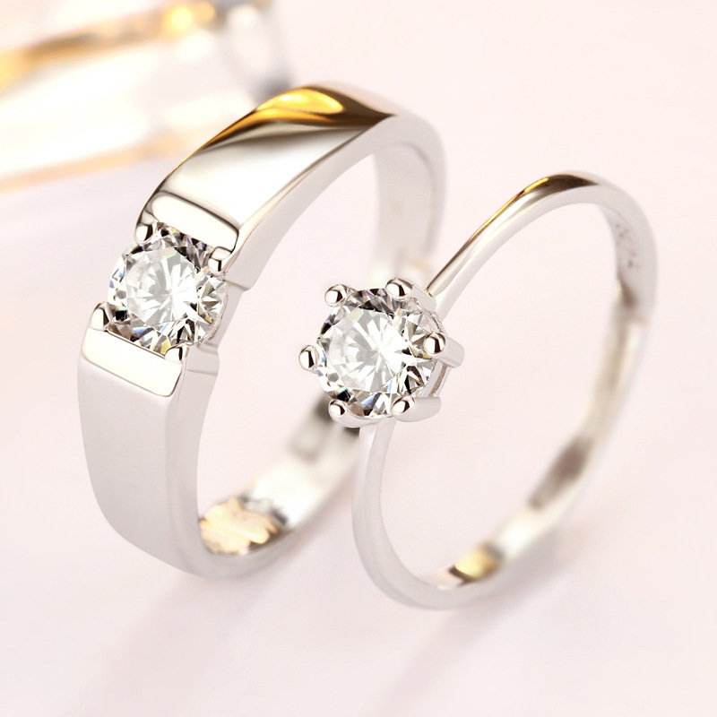 S925 sterling silver pair couple ring marriage brincher diamond ring