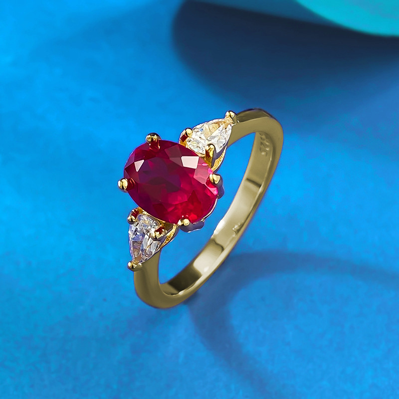 S925 Sterling Silver Pigeon Blood Red Oval Corundum Ring (6*8mm)