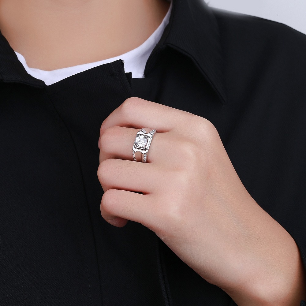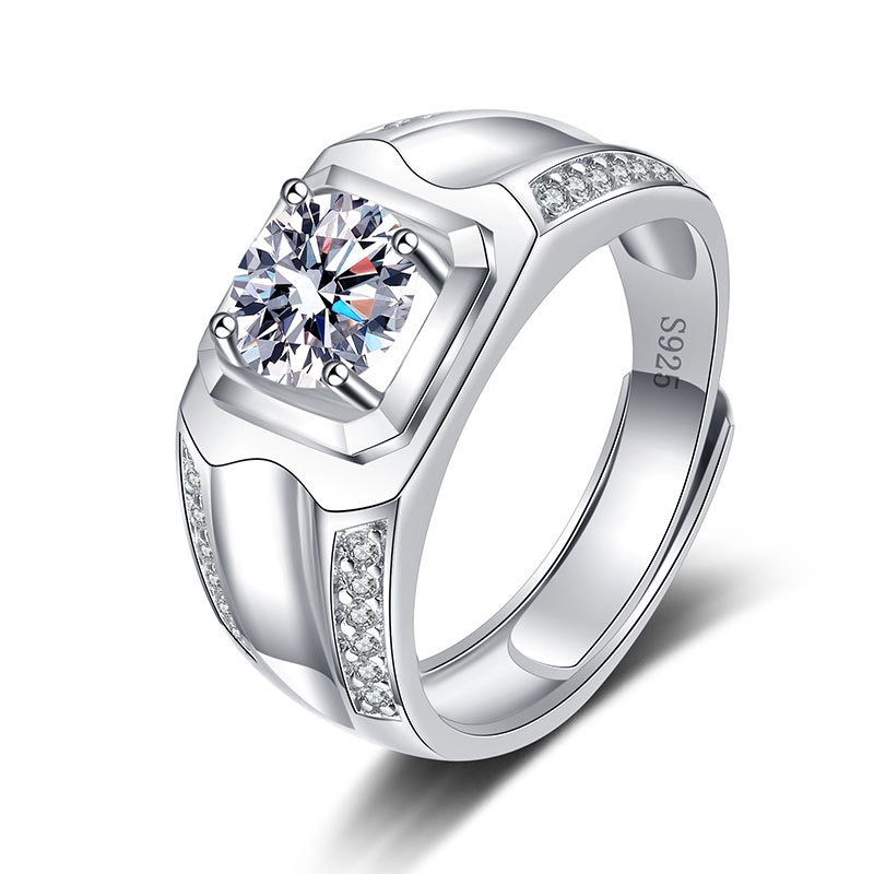 S925 sterling silver ring 1 carat GRA moissanite four-prong men's ring quantity