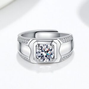 S925 sterling silver ring 1 carat GRA moissanite four-prong men’s ring