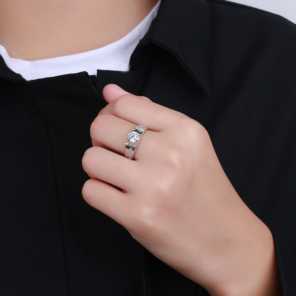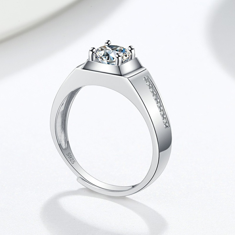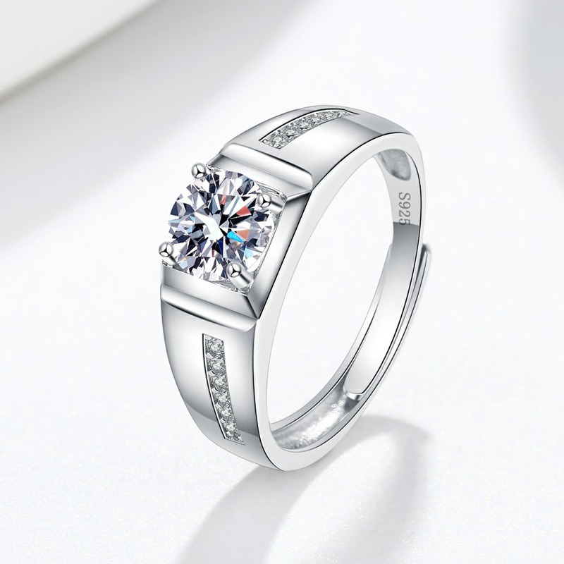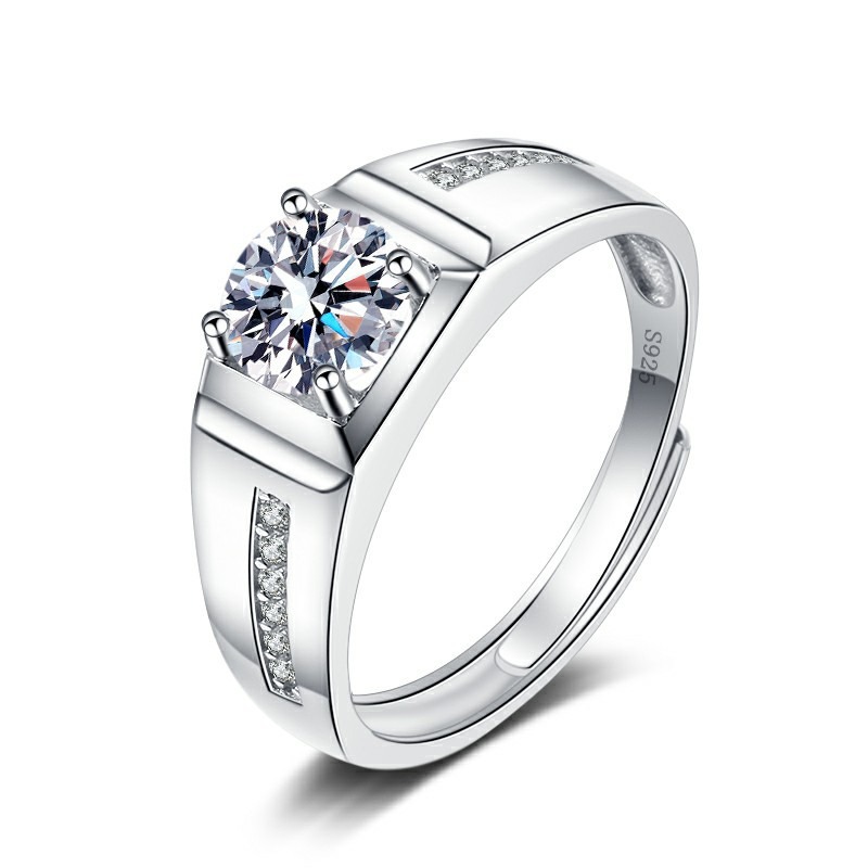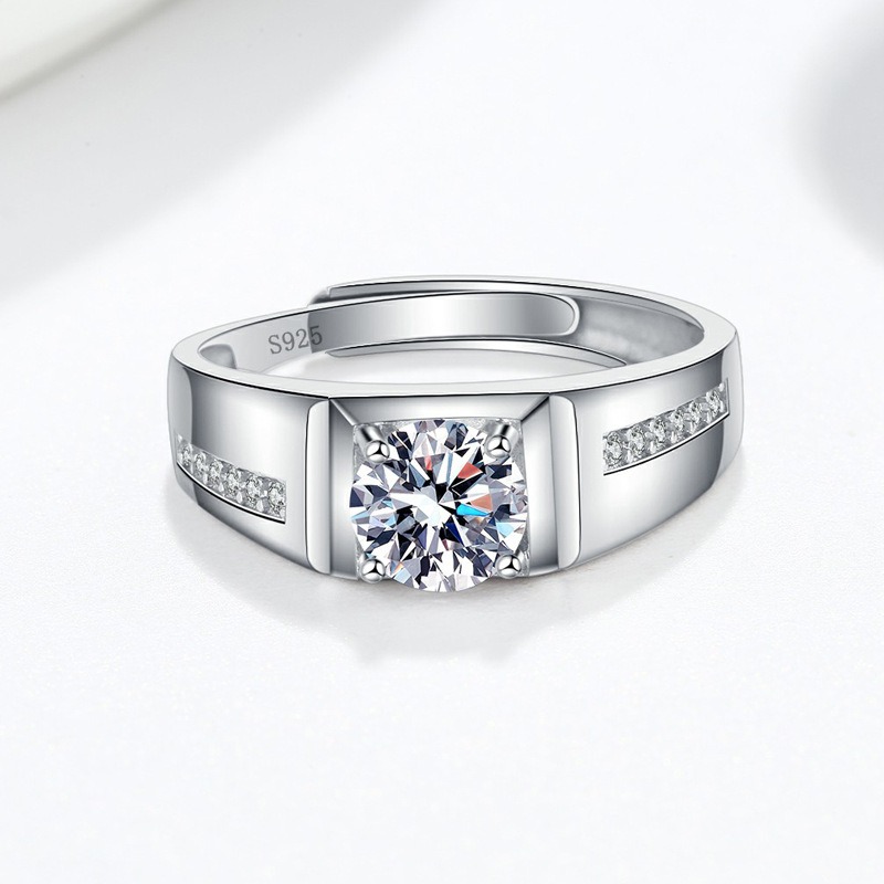 S925 Sterling Silver Ring 1 Carat GRA Moissanite Open Adjustable Men’s Ring