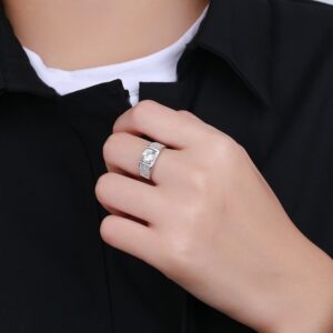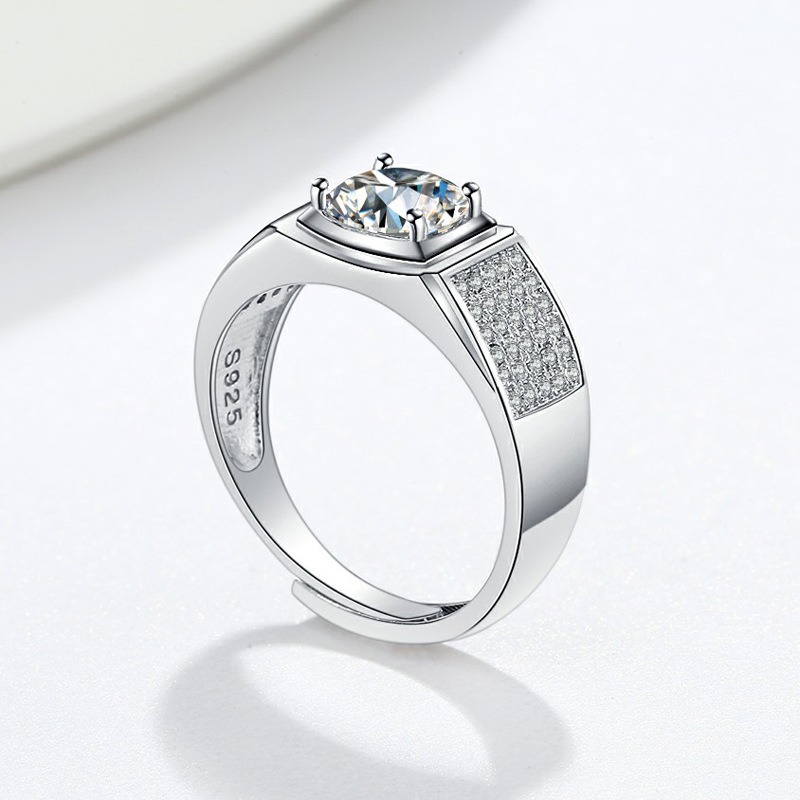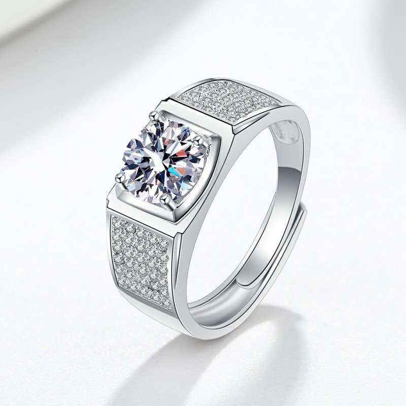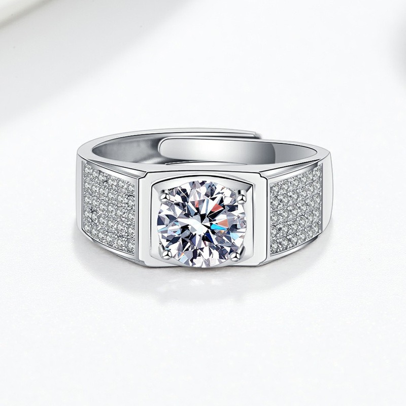 S925 Sterling Silver Ring 1 Carat GRA Moissanite Open Adjustable Men’s Ring