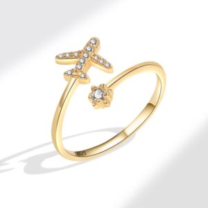 S925 Sterling Silver Ring Airplane Open Adjustable Ring for Women