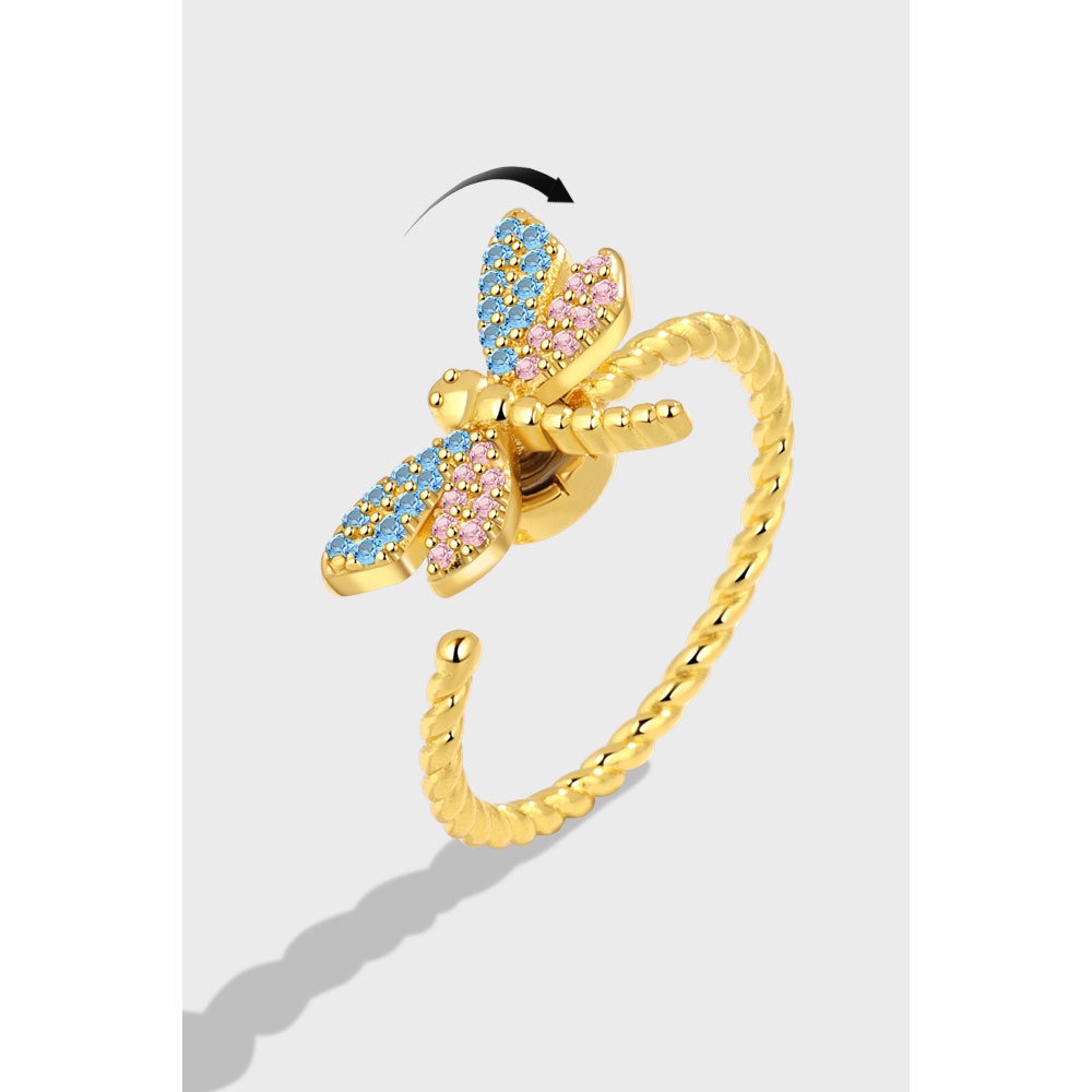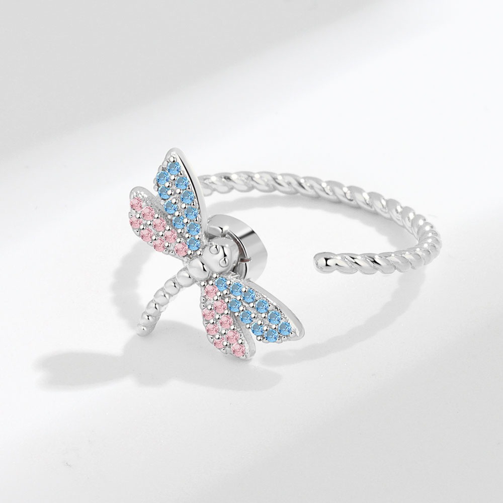 S925 Sterling Silver Ring Colored Zircon Dragonfly Open Adjustable Swivel Ring for Women
