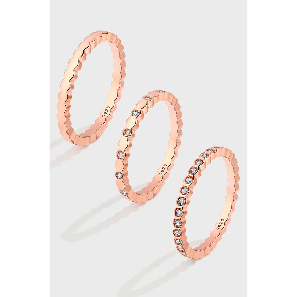 S925 sterling silver jewelry set three-piece rose gold ring simple necklace high-end earrings