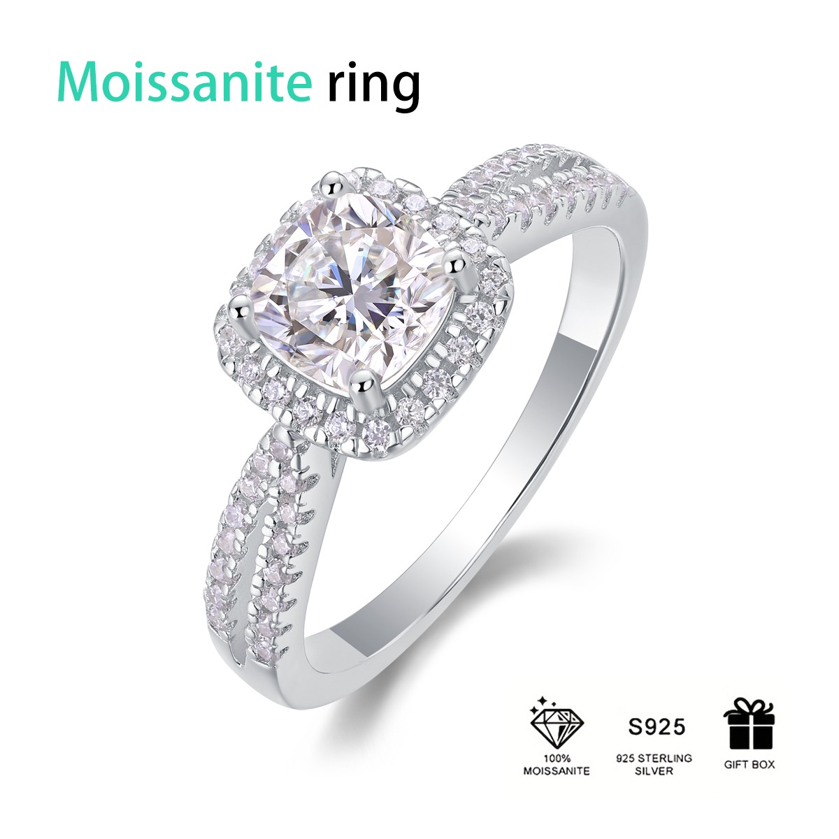 S925 Moissanite Ring Silver Jewelry Women Gift Party Sterling Stone Wedding Technology party