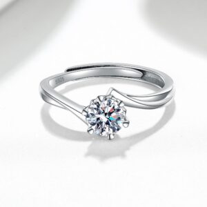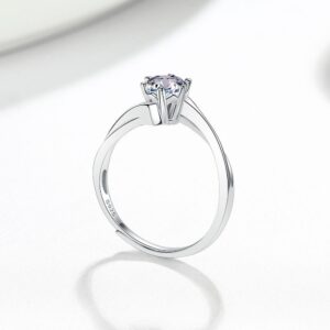 S925 Sterling Silver Ring GRA Moissanite 1 Carat Four Prong Open Adjustable Ring for Women