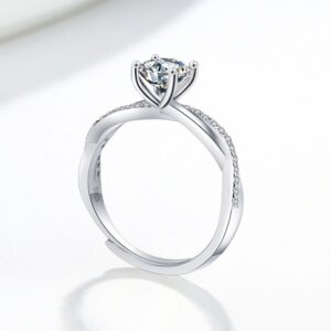 S925 Sterling Silver Ring GRA Moissanite 1 Carat Four Prong Open Adjustable Ring for Women