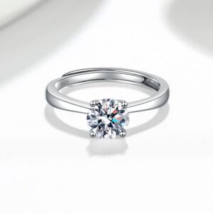 S925 Sterling Silver Ring GRA Moissanite Open Adjustable Ring for Women